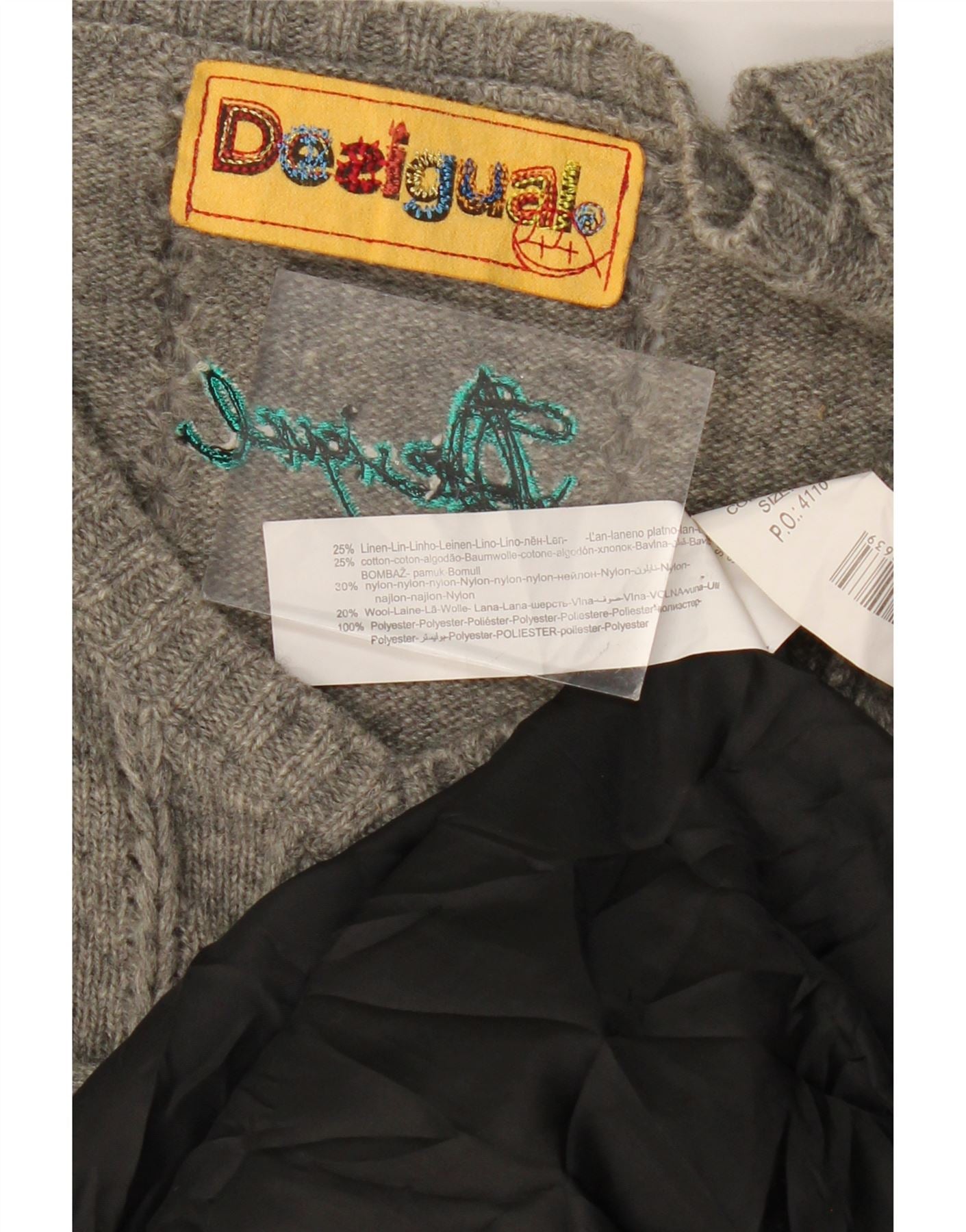 DESIGUAL Abito maglione da donna a maniche lunghe EU 44 XL Lino patchwork grigio