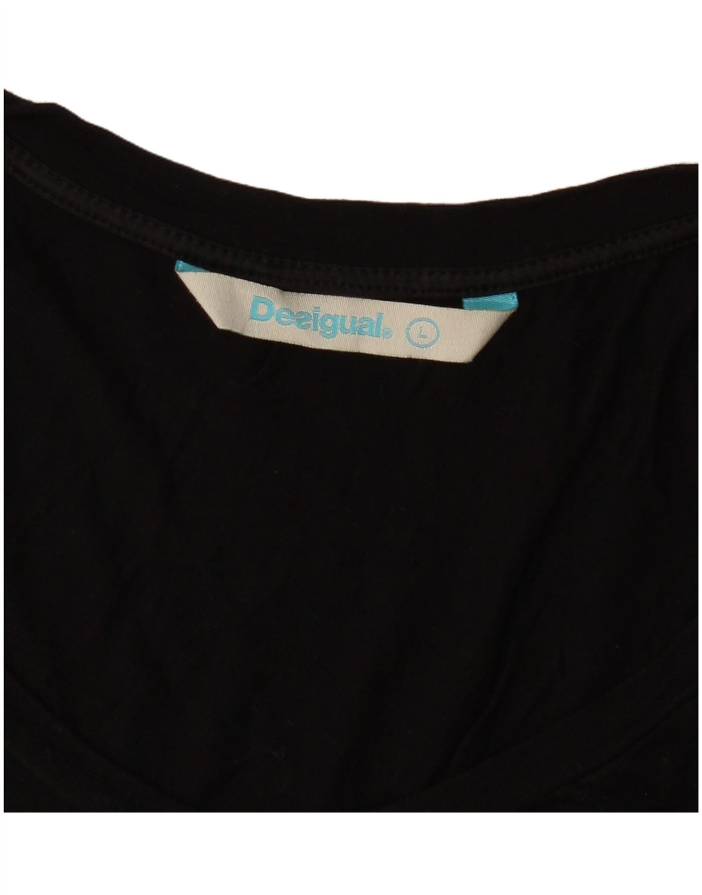 DESIGUAL Womens Longline Sleeveless Blouse Top UK 14 Large Black Floral