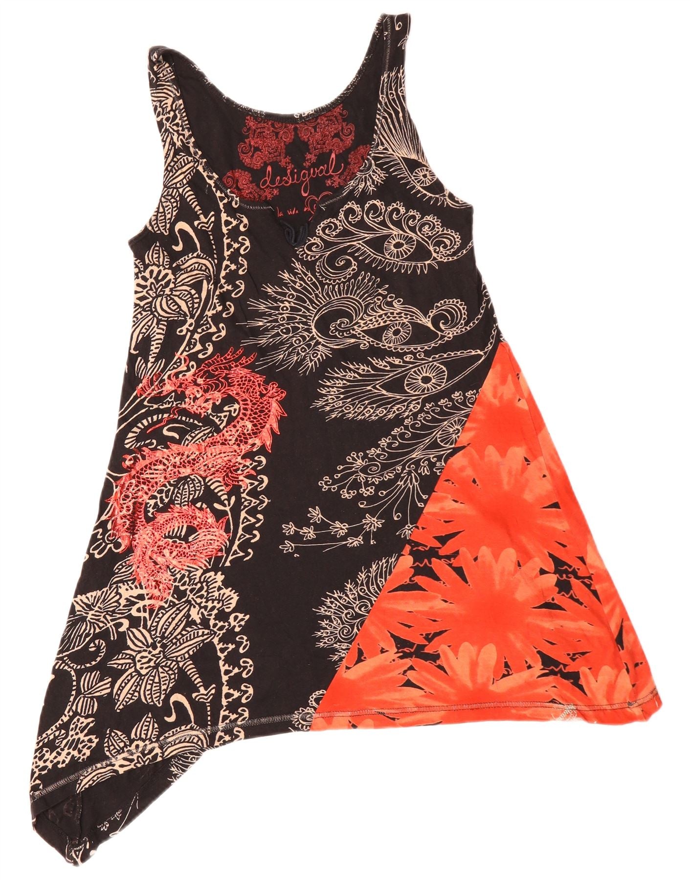 DESIGUAL Top tunica asimmetrica senza maniche da donna UK 10 piccolo floreale nero