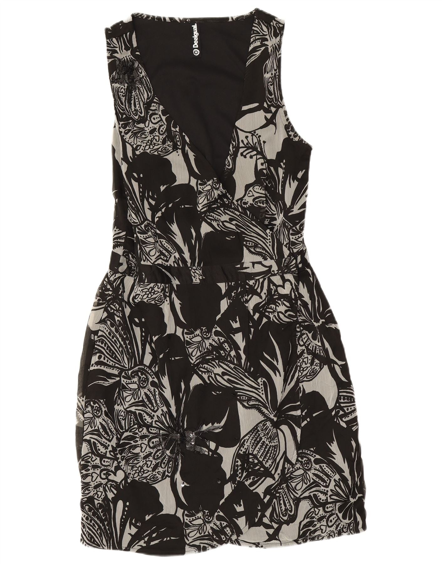 DESIGUAL Abito a portafoglio senza maniche da donna EU 38 Poliestere floreale nero medio