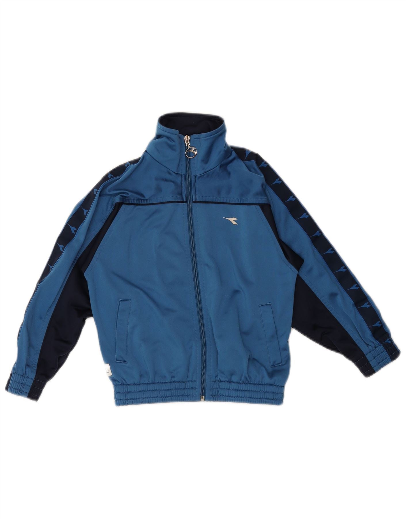 DIADORA Boys Graphic Tracksuit Top Jacket 5-6 Years Blue Colourblock