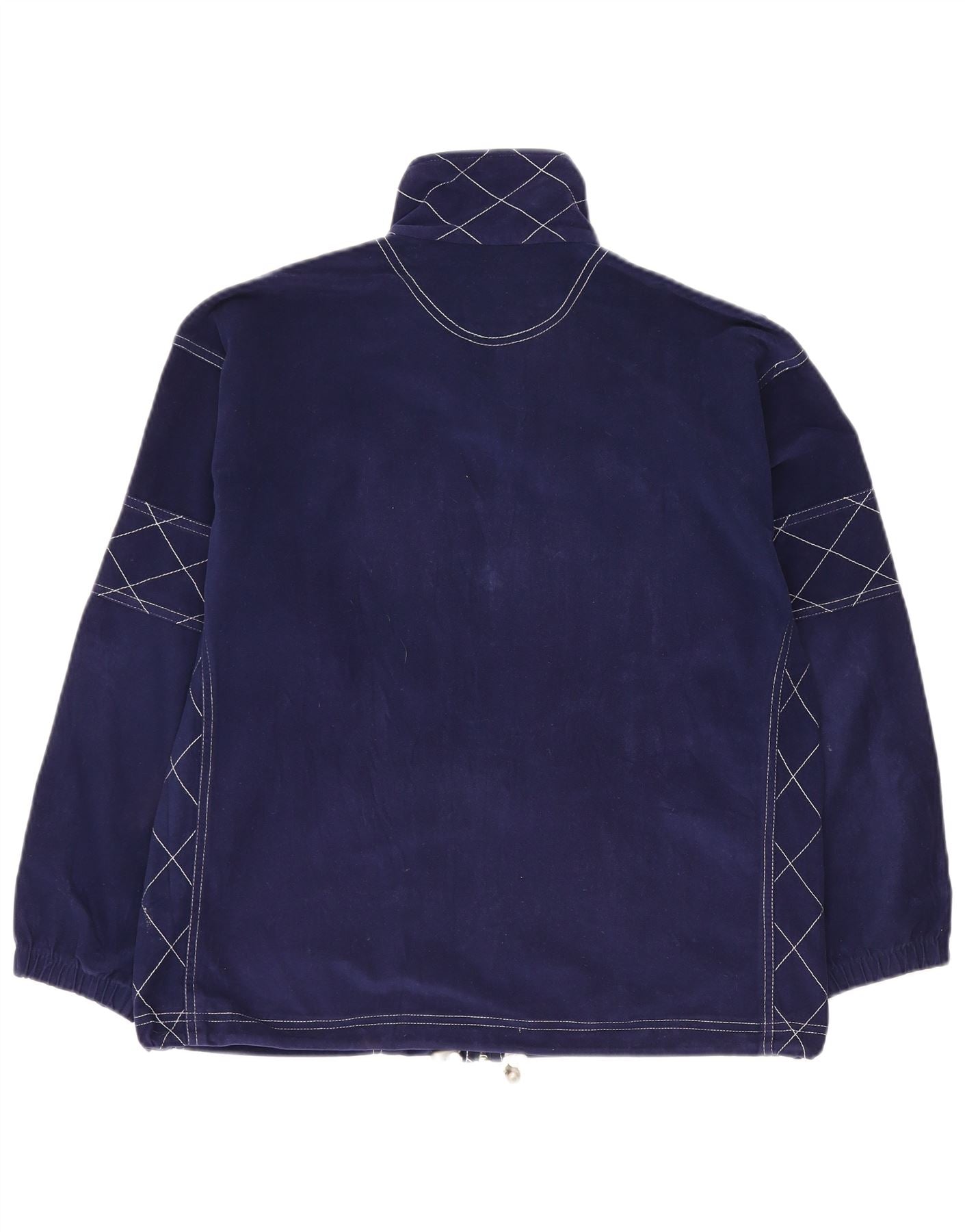 - Descrizione dell'IA: Questa giacca da tuta da uomo Diadora è realizzata in lussuoso poliestere velour blu navy. Presenta un classico scollo con colletto e una chiusura con zip completa per uno stile versatile. Le maniche lunghe sono dettagliate con cuciture bianche distintive e nastro fantasia, aggiungendo un tocco retrò. La vestibilità regolare garantisce una vestibilità comoda. Pratiche tasche completano questo capo elegante e funzionale.