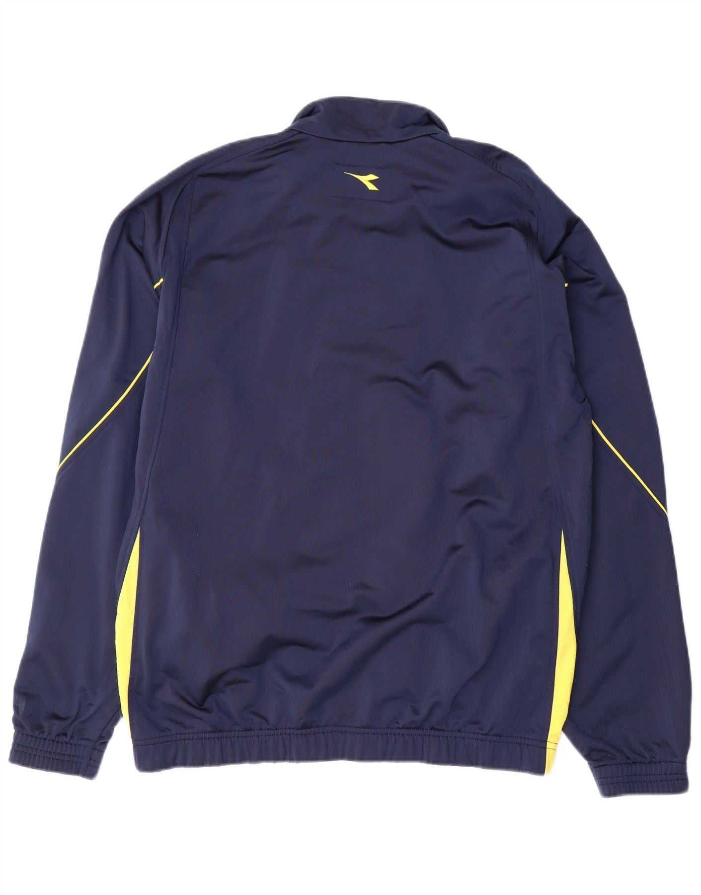 - Descrizione dell'IA: Questa giacca da tuta da uomo Diadora è realizzata in maglia di poliestere liscio blu navy. Presenta un classico scollo con colletto e una chiusura con zip completa per un abbigliamento versatile. Le maniche lunghe e la vestibilità regolare garantiscono un movimento confortevole. Gli accenti gialli lungo le maniche e i lati aggiungono un contrasto dinamico. Il logo Diadora è posizionato in modo discreto, completando questo design sportivo.