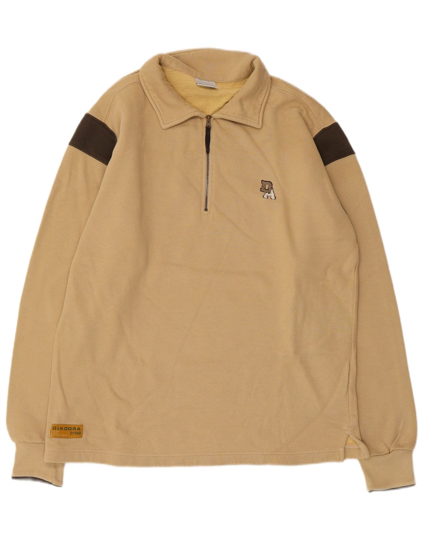 DIADORA Felpa Uomo Collo Alto Maglione Large Beige Colorblock Cotone