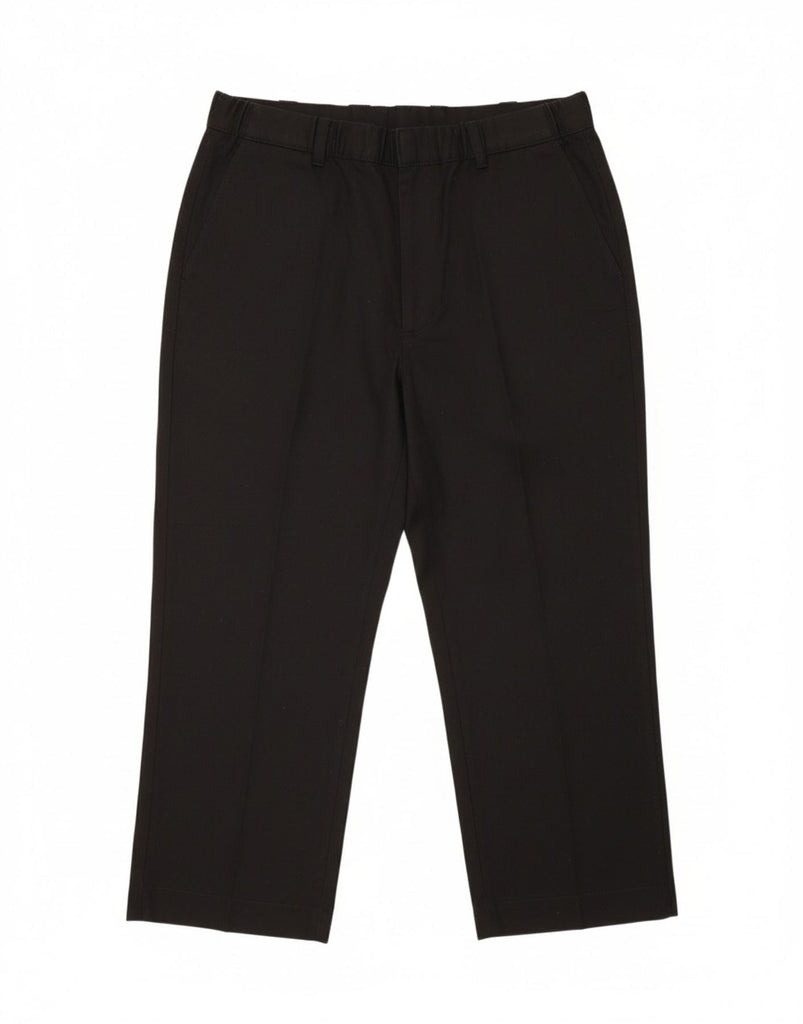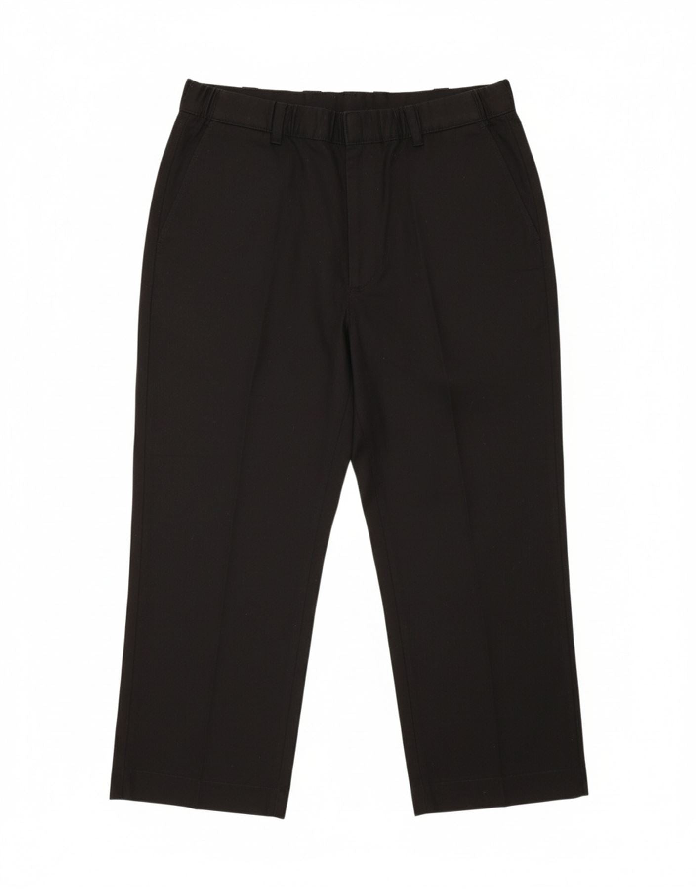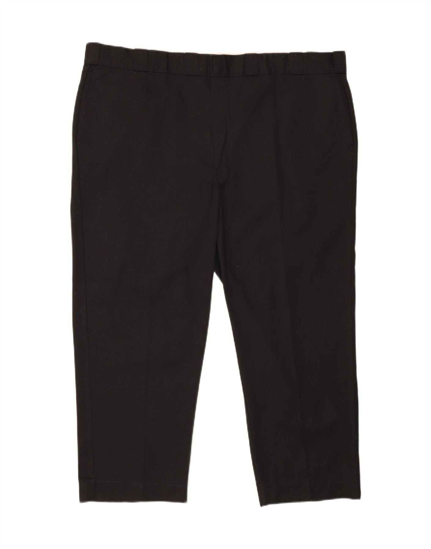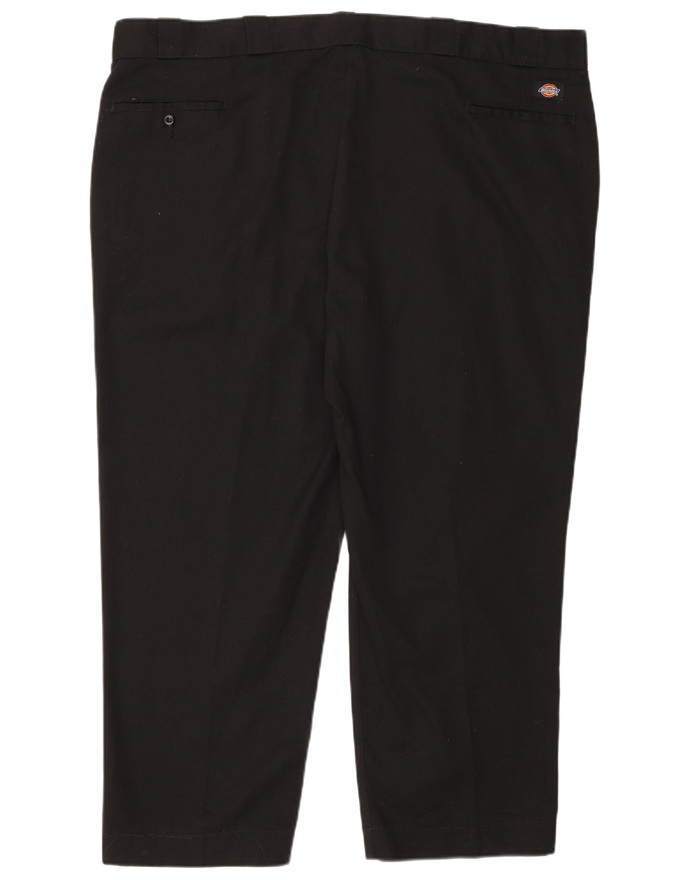 - AI Description: This Dickies men's cropped trousers are crafted from a durable blended fabric, 65 percent Polyester and 35 percent Cotton. They feature a classic regular fit, providing comfort and ease of movement. The button and zip closure offers a secure fastening. Practical pockets are included, and a subtle logo accent adds signature branding. Their cropped length makes them ideal for a versatile, casual style.