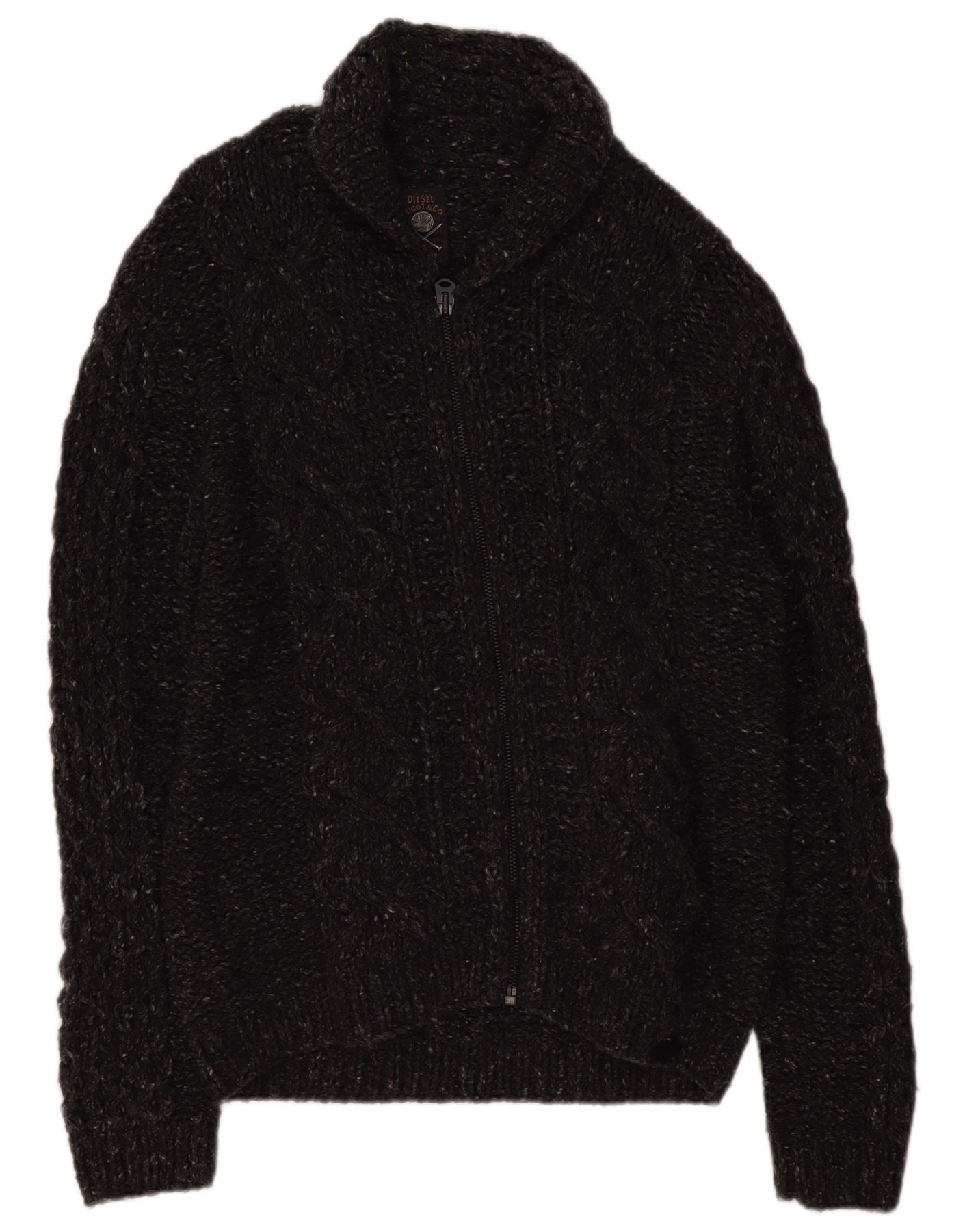 DIESEL Maglione cardigan da uomo grande lana screziata grigia