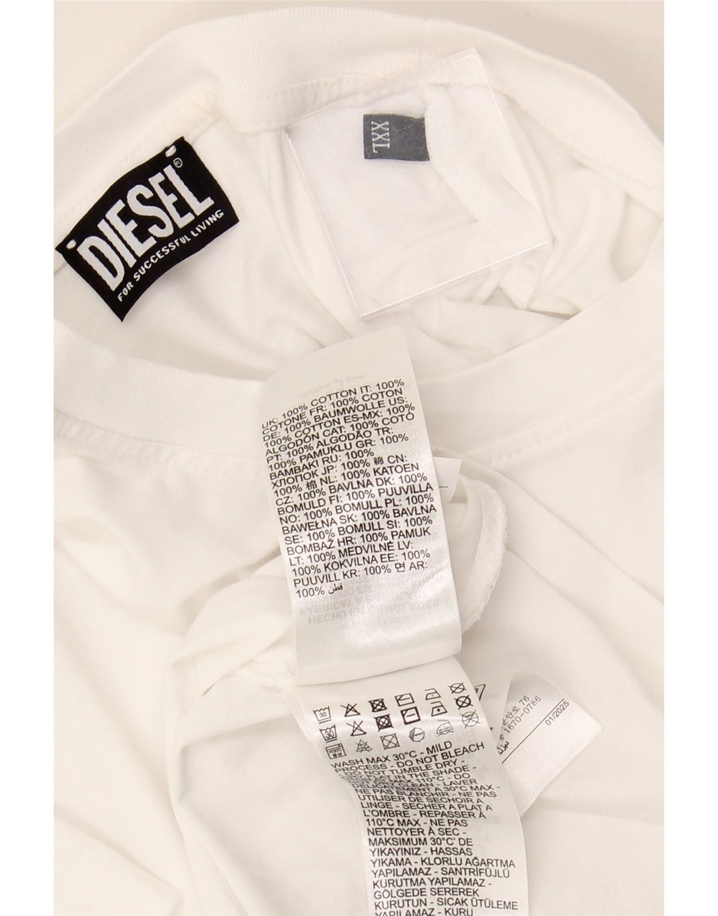 T-shirt grafica da uomo DIESEL Top 2XL cotone bianco