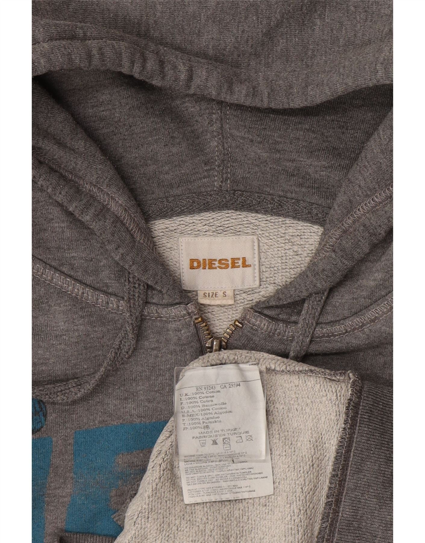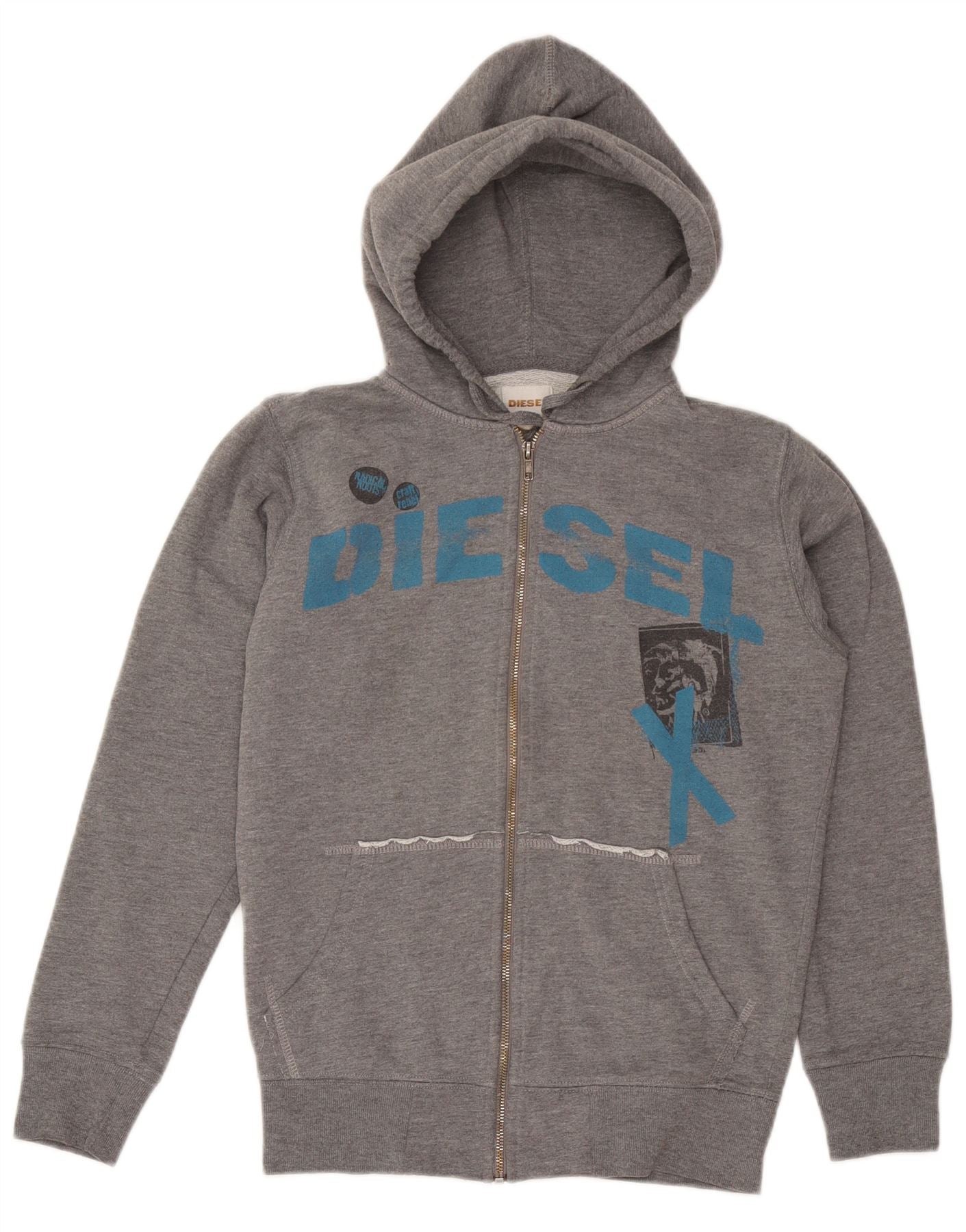 DIESEL Maglione con cappuccio e zip grafica da uomo piccolo in cotone grigio