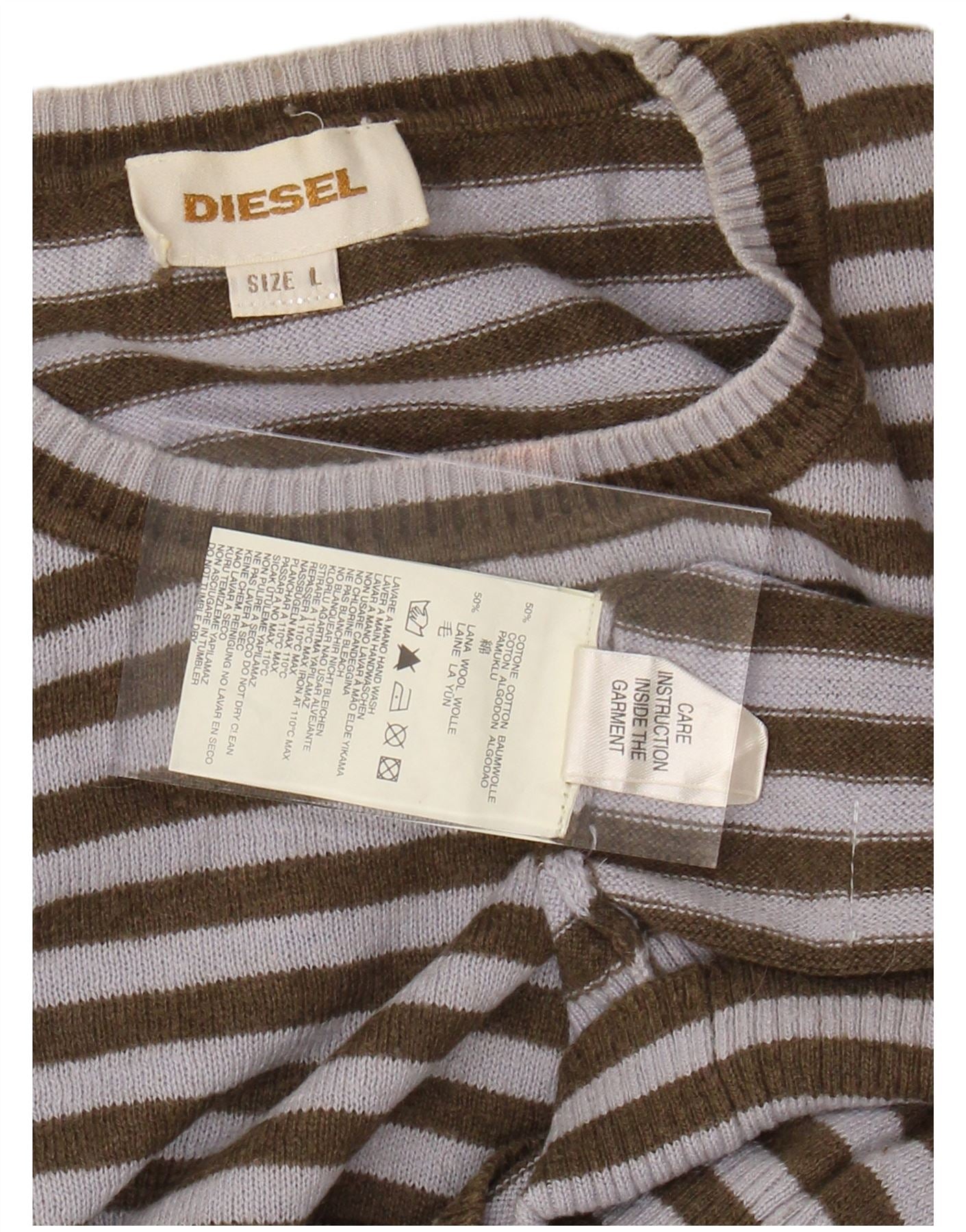 DIESEL Maglione maglione girocollo da donna UK 16 Cotone a righe grandi kaki