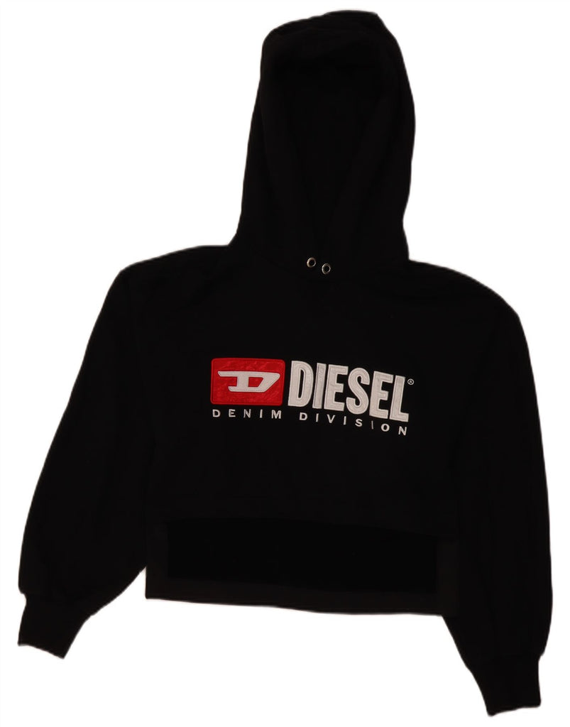 DIESEL Maglione con cappuccio grafico da donna corto UK 10 piccolo cotone nero