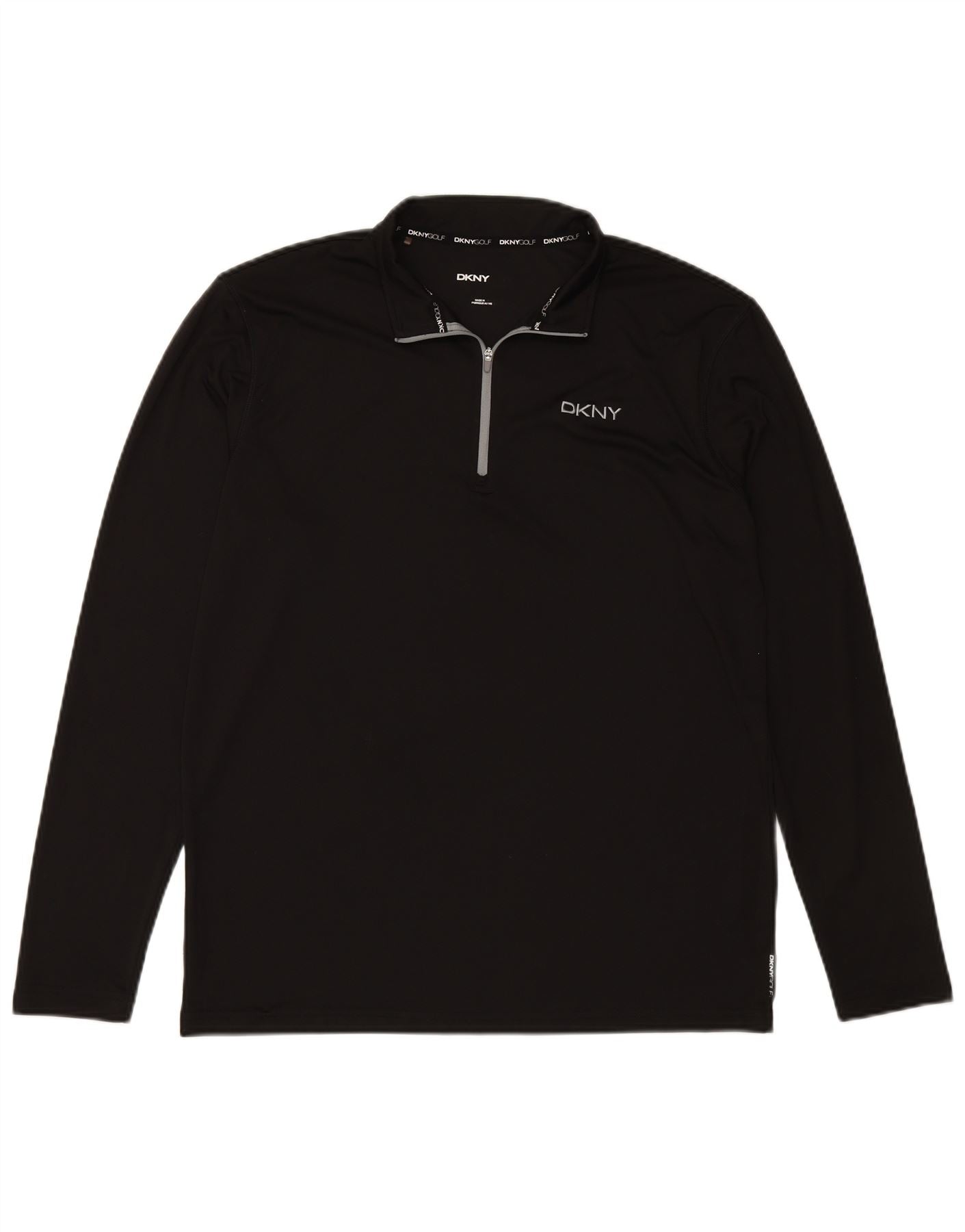 DKNY Tuta da uomo pullover con zip e collo, grande, in poliestere nero