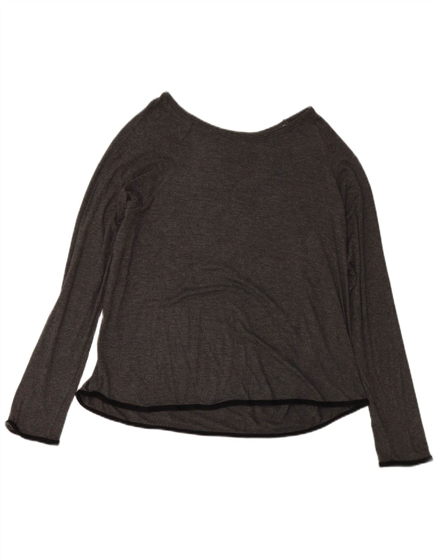 DKNY Top da donna con spalle scoperte manica lunga UK 16 Large Rayon grigio