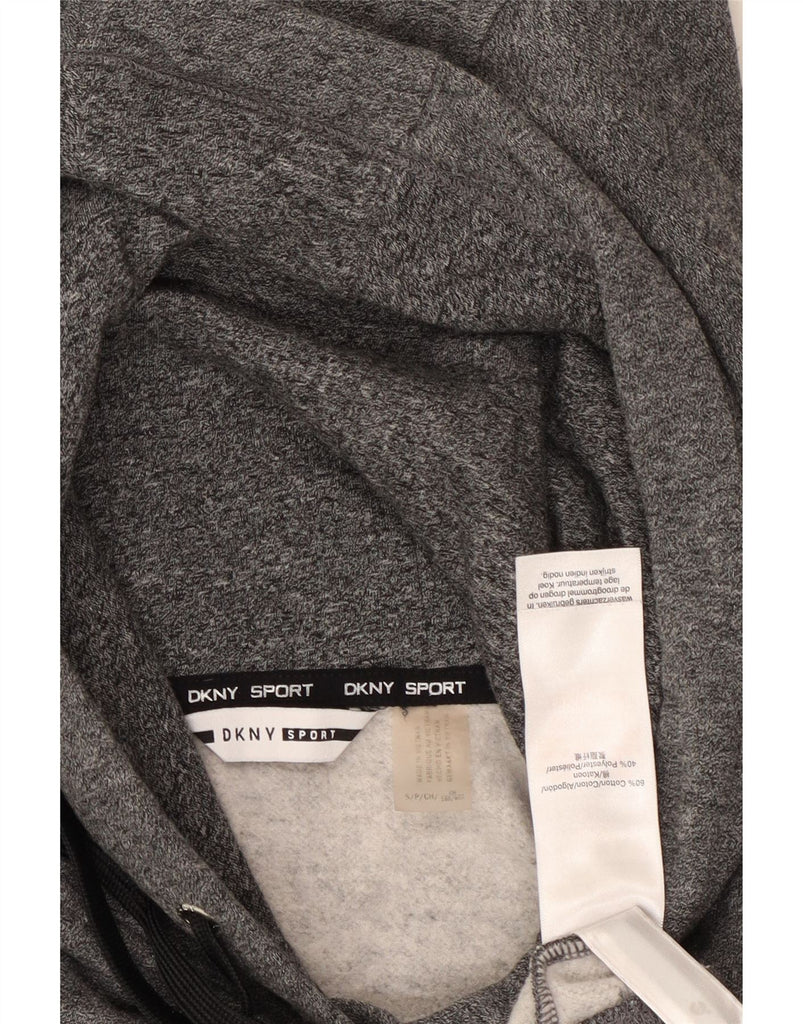 DKNY Womens Oversized Crop Graphic Hoodie Jumper UK 10 Small Grey Flecked