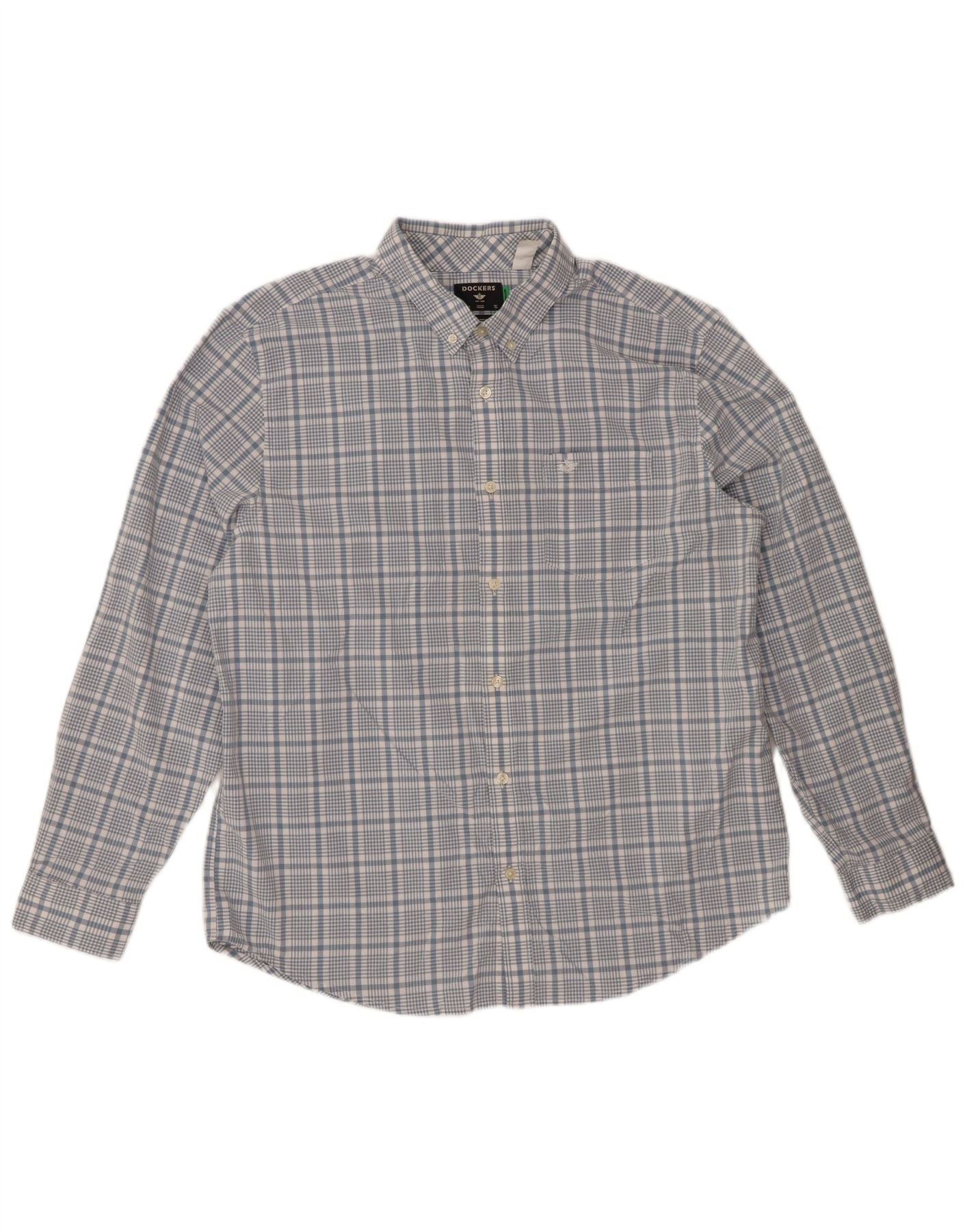 DOCKERS Camicia da uomo vestibilità classica XL in cotone a quadri blu