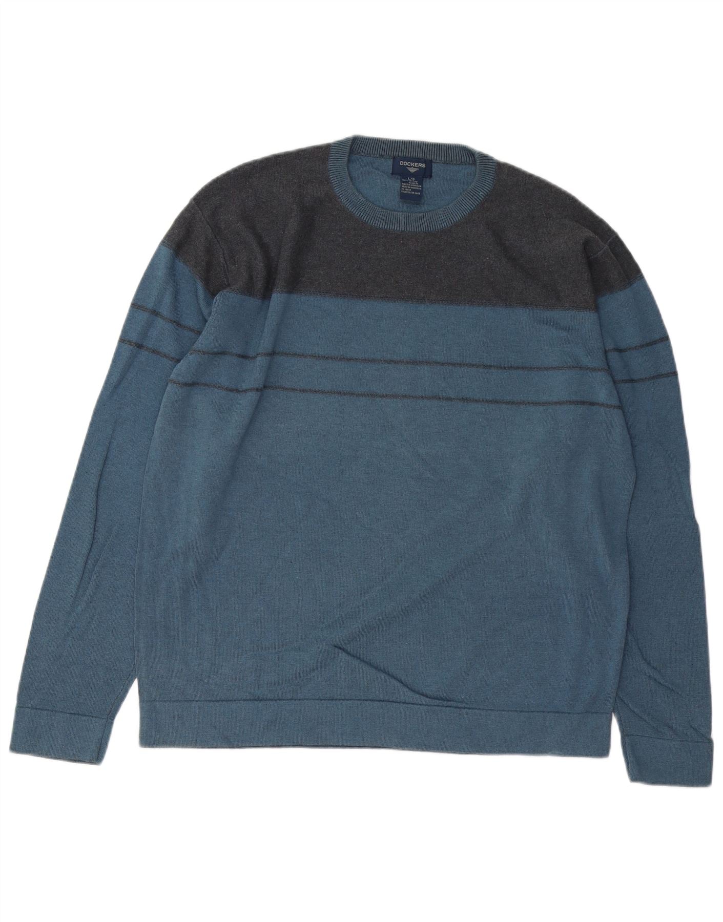 DOCKERS Maglione maglione girocollo da uomo grande cotone blu a blocchi di colore