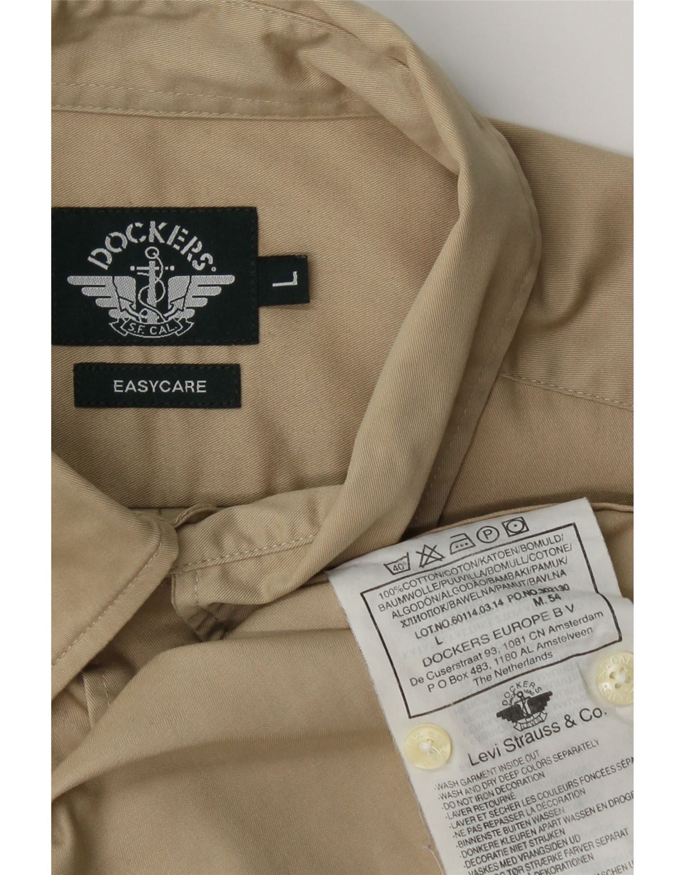 DOCKERS Mens Easy Care Shirt Large Beige Cotton