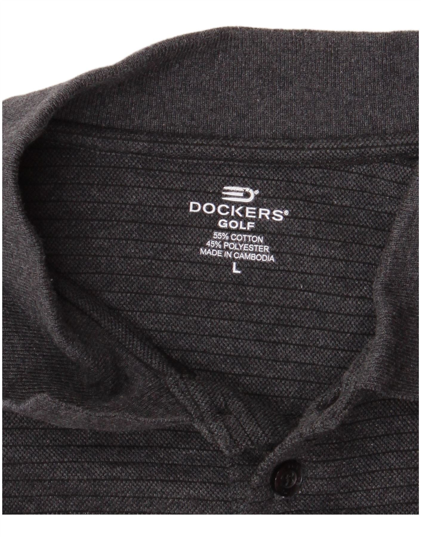 - Descrizione dell'IA: Questa polo da uomo Dockers è realizzata in un comodo tessuto misto cotone-poliestere. Presenta un classico scollo con colletto e maniche corte. L'abbottonatura aggiunge dettagli tradizionali. Un sottile motivo a strisce corre orizzontalmente sul tessuto grigio scuro. Questa polo dalla vestibilità regolare è ideale per il golf o per l'abbigliamento casual e offre stile e comfort.