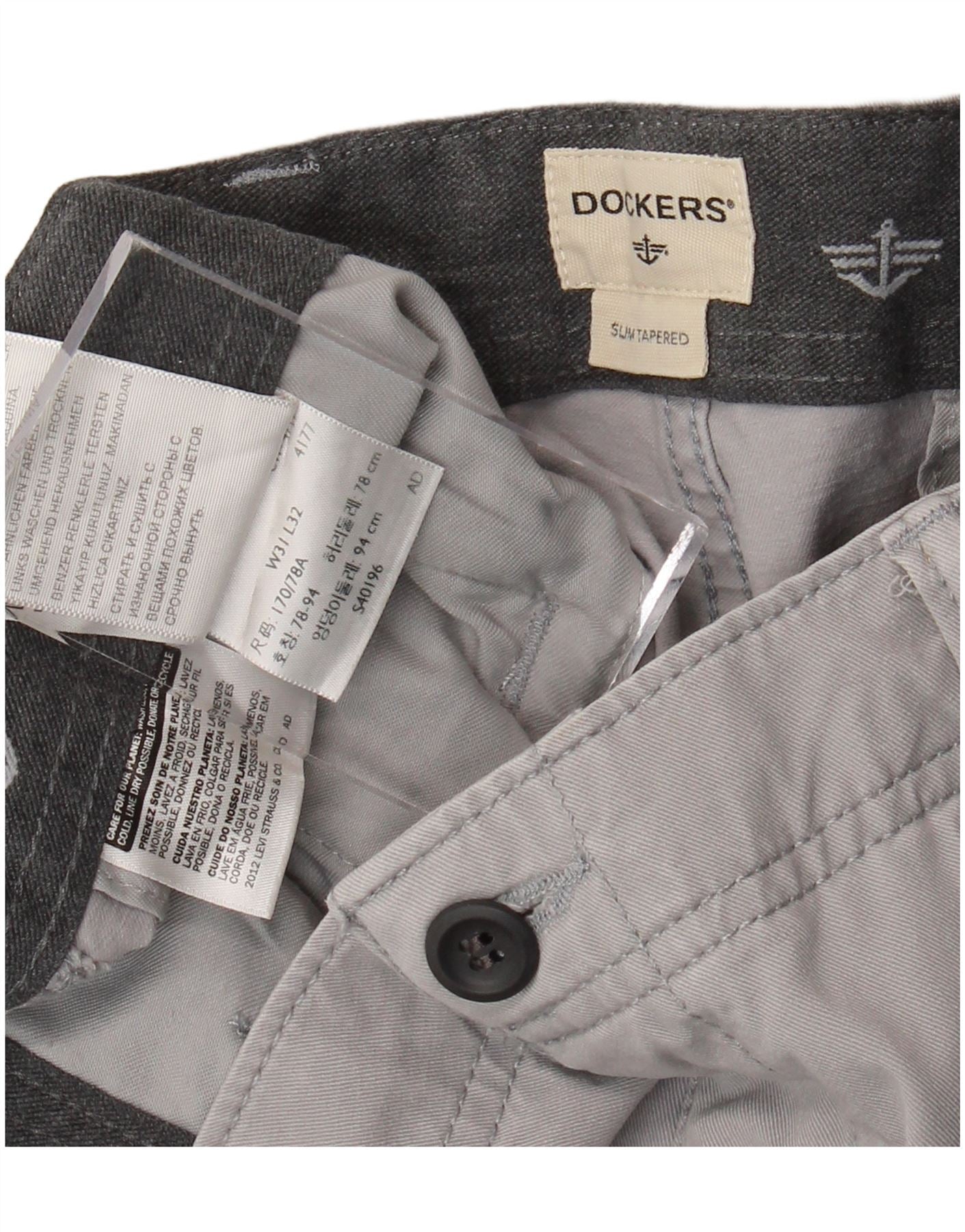 Pantaloni chino slim affusolati da uomo Dockers W31 L32 in cotone grigio