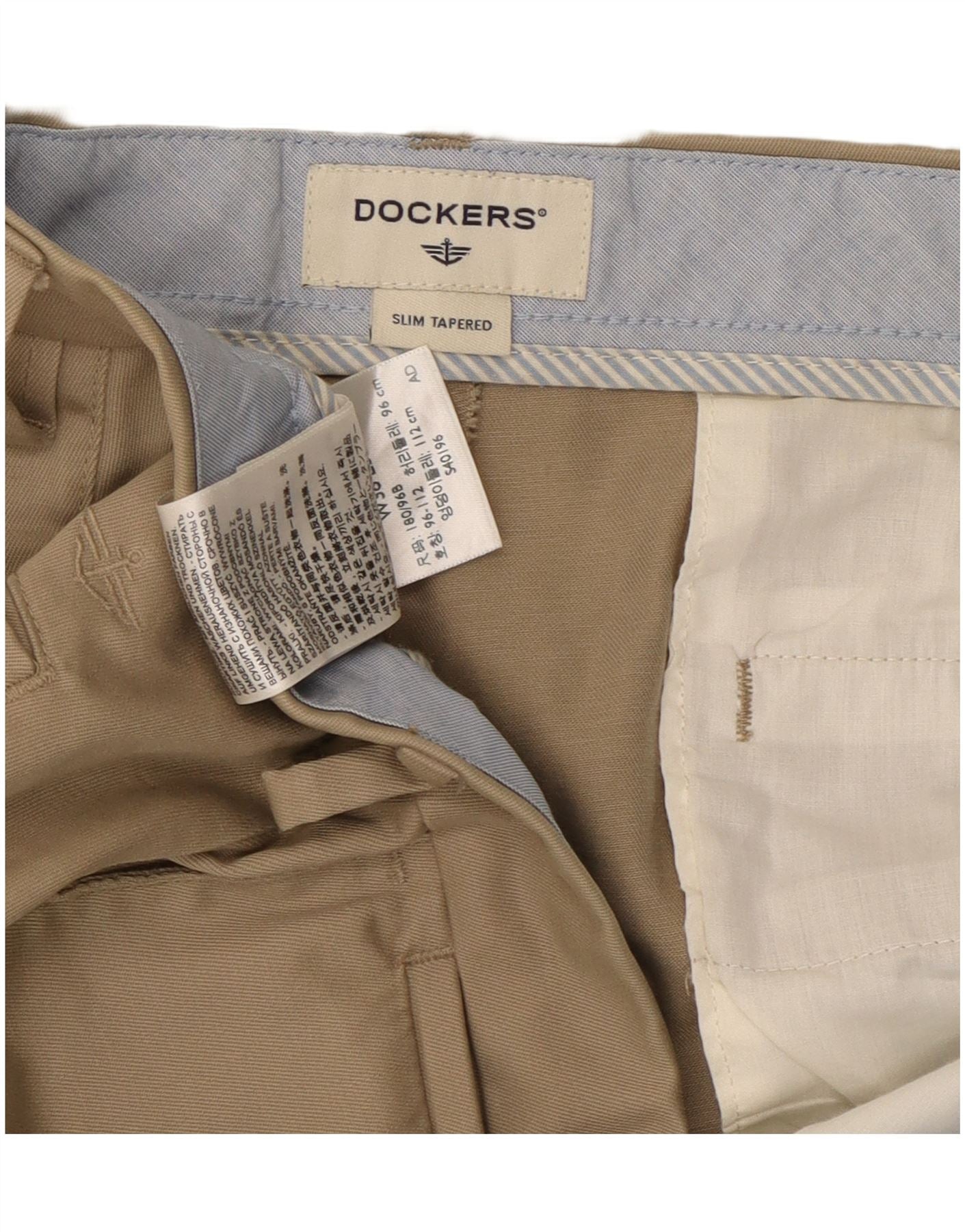 DOCKERS Pantaloni chino slim affusolati da uomo W38 L32 in cotone beige