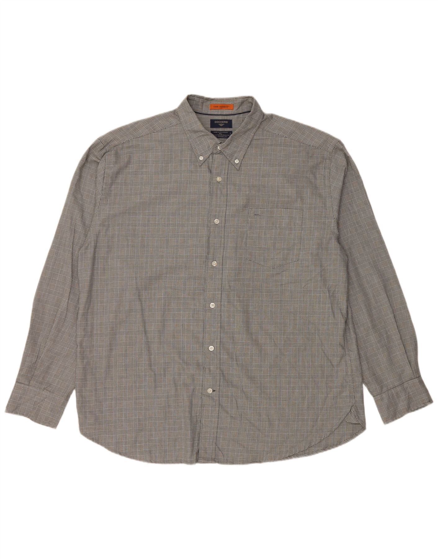 DOCKERS Camicia da uomo Stain Defender XL in cotone a quadri grigio
