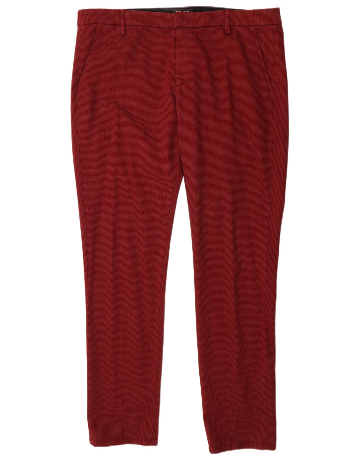- Descrizione dell'IA: Questi pantaloni chino da uomo Dondup sono realizzati in un ricco tessuto bordeaux con una trama sottile. Presentano una vestibilità regolare con gambe dritte per una silhouette classica. La cintura include passanti per cintura. Una chiusura con bottone fissa la parte anteriore. Pratiche tasche sono incluse sui lati e sul retro. I bottoni tonali aggiungono un accento raffinato. Questo design offre comfort e stile intelligente per varie occasioni.