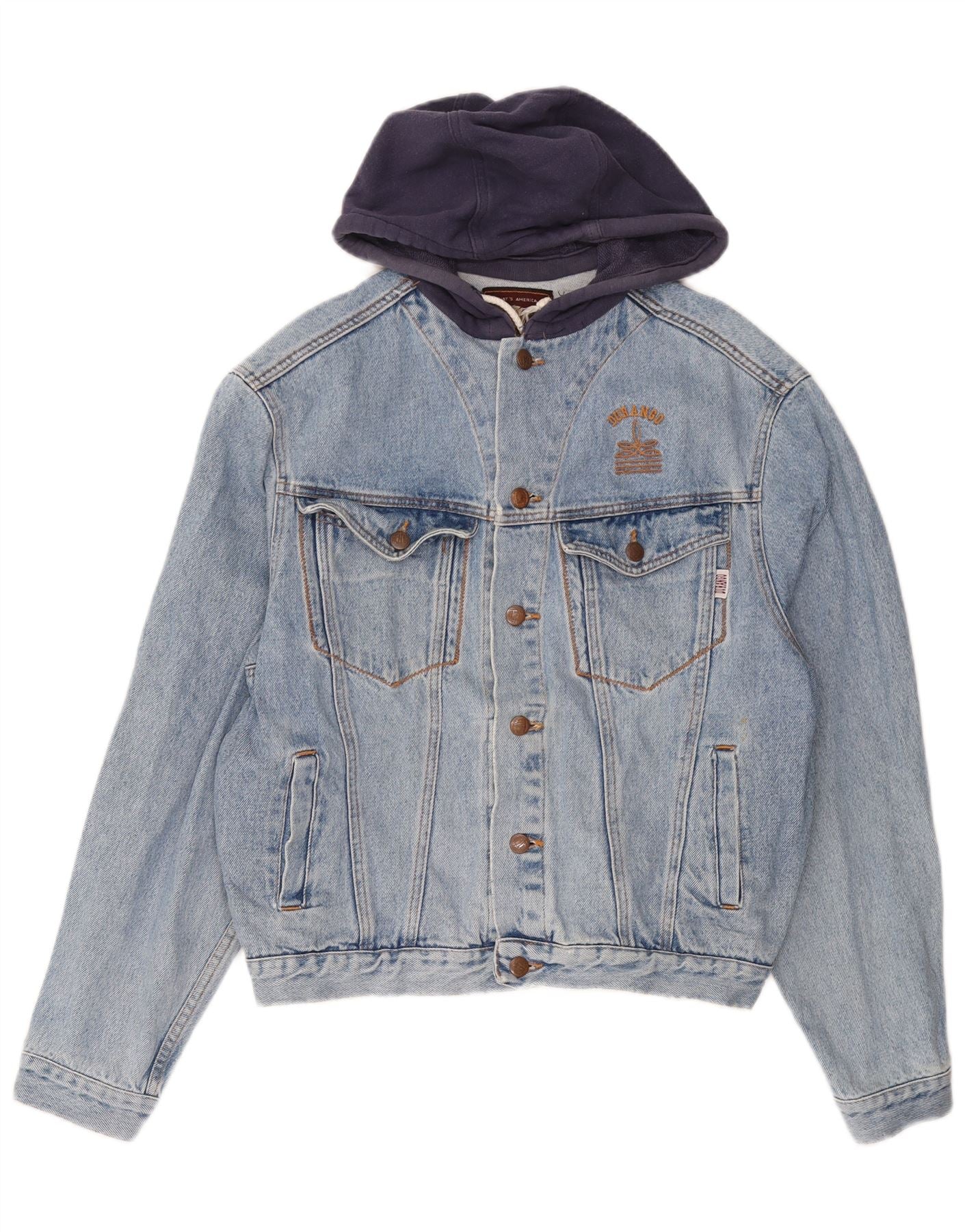 Giacca di jeans con cappuccio da uomo DURANGO UK 40 Large Blu Colourblock Cotton