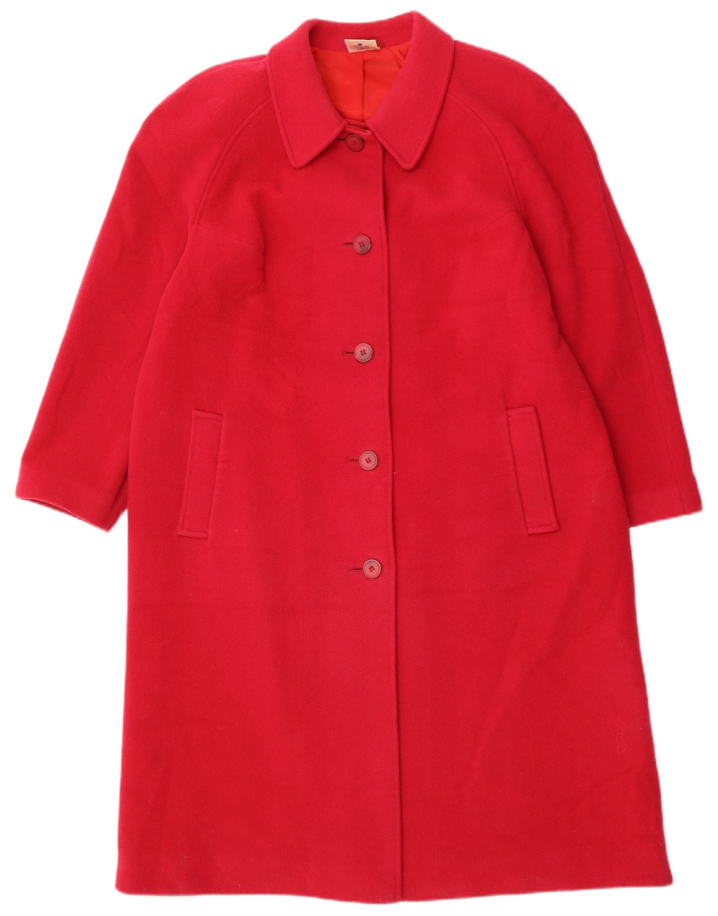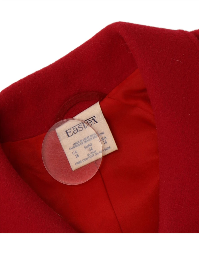 - AI Description: This Eastex women's coat in red features a classic style with a collared neckline. The woven wool fabric offers a regular fit and long sleeves. It has a button closure, is fully lined, and includes pockets and shoulder pads. Made in Great Britain, this coat provides both warmth and timeless elegance.