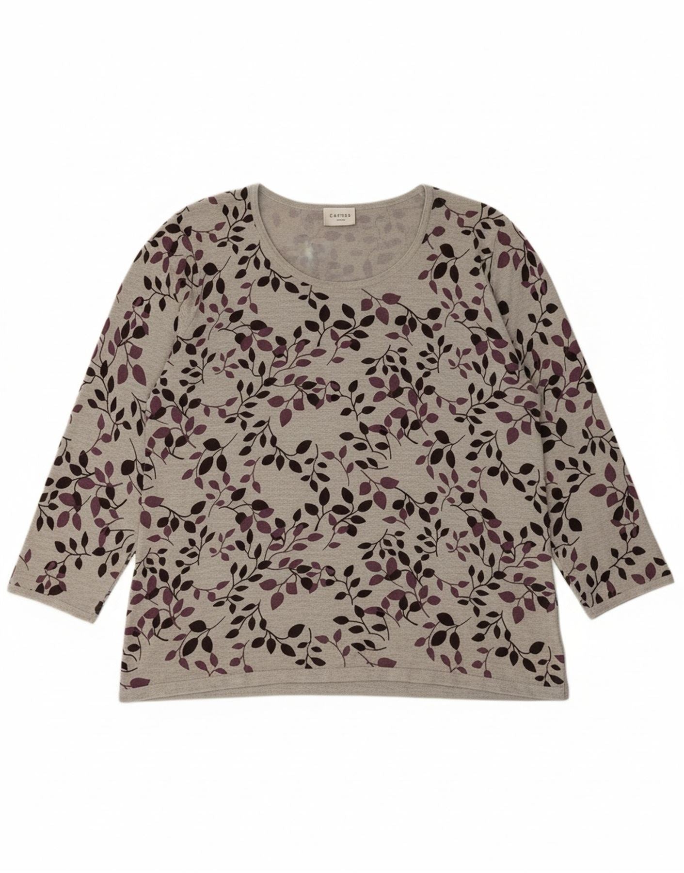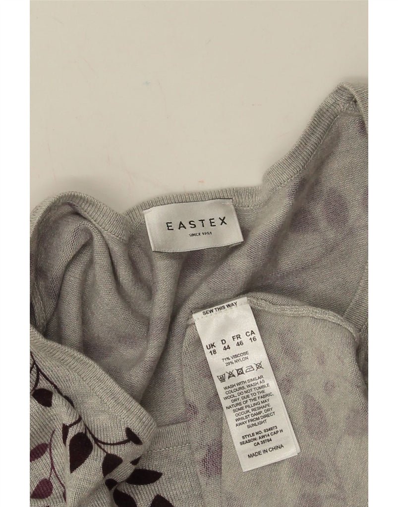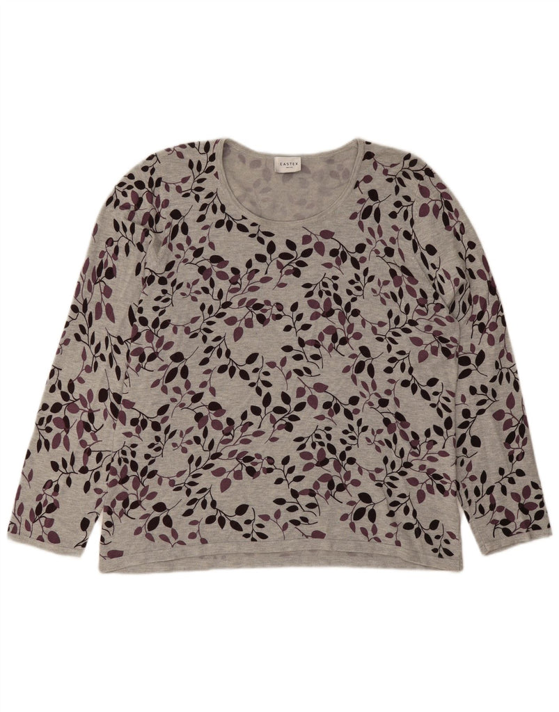 - AI Description: This Eastex womens Graphic T-shirt is crafted from a soft viscose blend fabric. It comes in a grey hue, featuring a vibrant floral graphic pattern. The top has a classic round neckline and long sleeves. Its pullover design ensures a comfortable regular fit. The detailed floral print adds a sophisticated touch to this versatile garment.