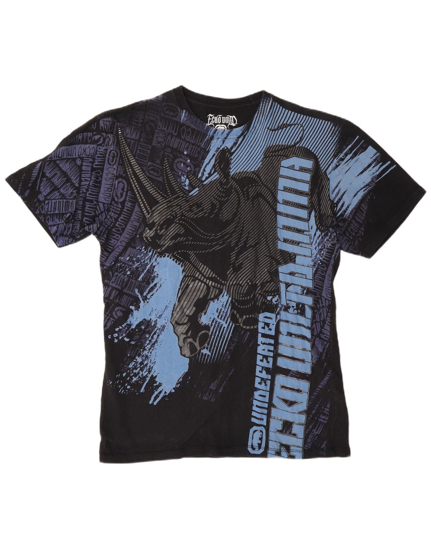 - Descrizione dell'IA: Questa maglietta grafica da uomo di Ecko Unltd è realizzata in morbido jersey di cotone nero. Presenta un classico girocollo e maniche corte per una comoda vestibilità regolare. La parte anteriore mostra un'audace illustrazione di rinoceronte con accenti grafici blu, che riflettono il suo stile MMA. Un discreto logo Ecko Unltd aggiunge autenticità al marchio. Questo maglione offre sia comfort che una sorprendente dichiarazione visiva.