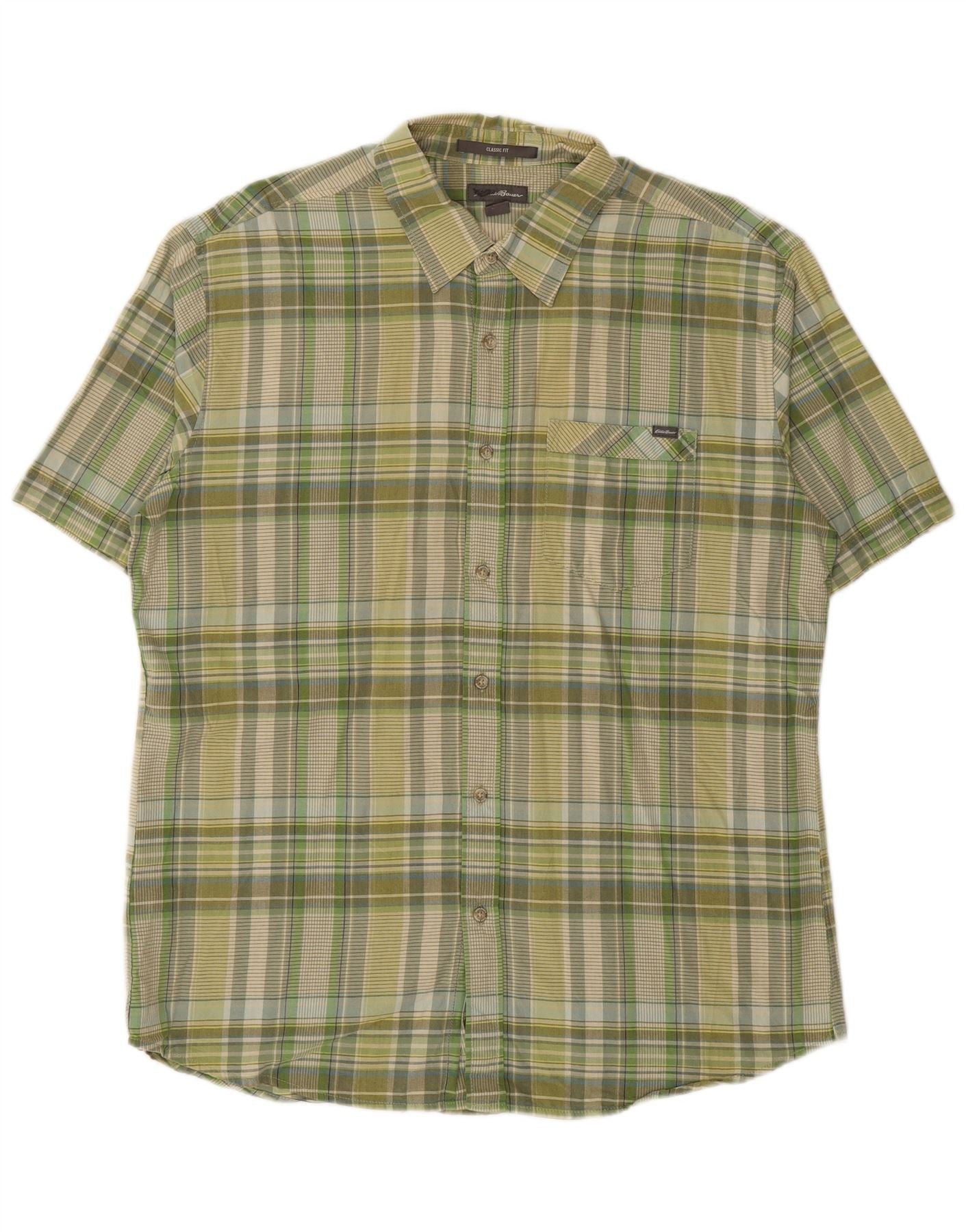 EDDIE BAUER Camicia da uomo a maniche corte vestibilità classica in cotone a quadri verdi grandi