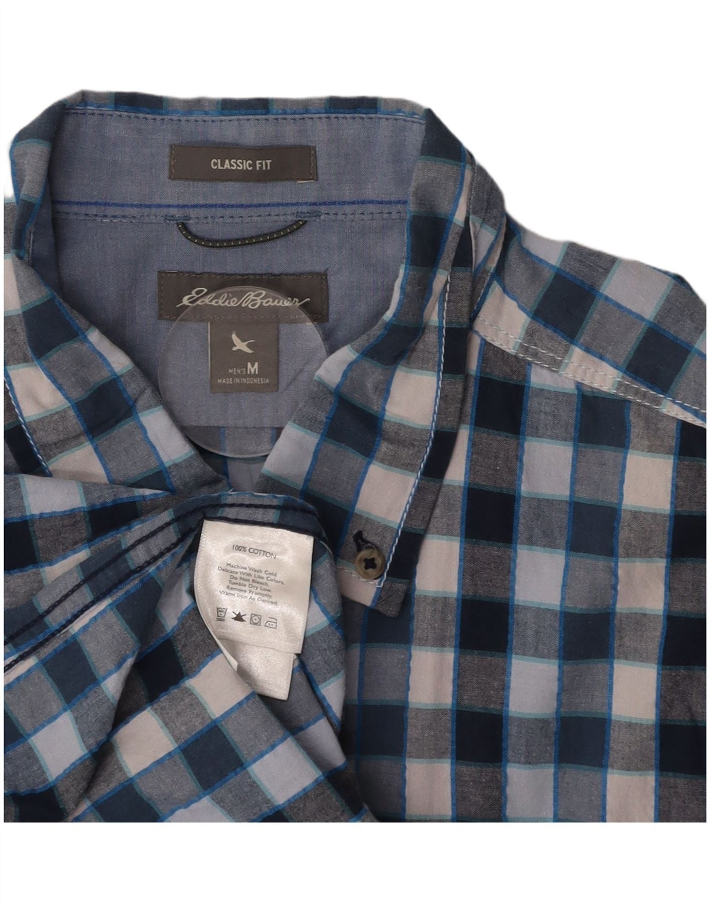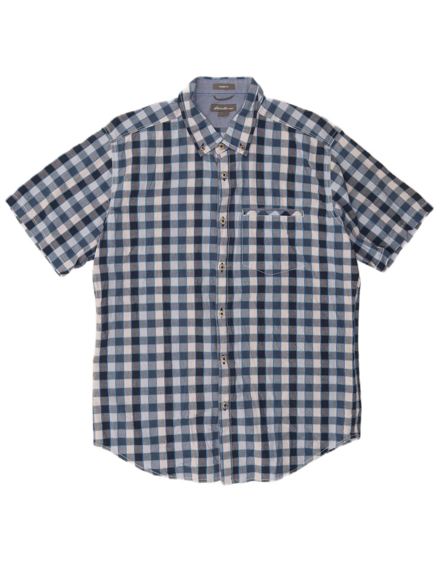 EDDIE BAUER Camicia da uomo a maniche corte vestibilità classica in cotone a quadri blu medio