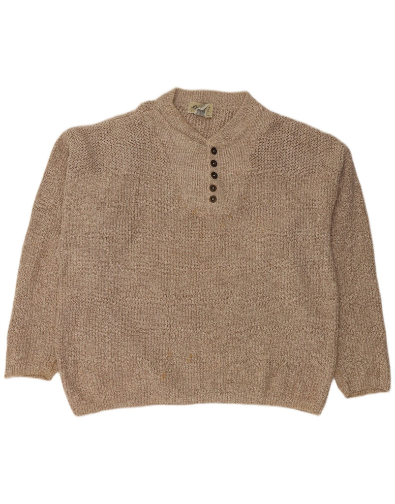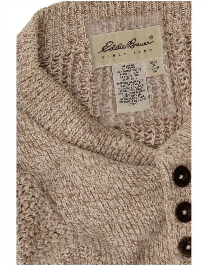 EDDIE BAUER Maglione da uomo oversize con collo a bottoni XL Beige chiazzato