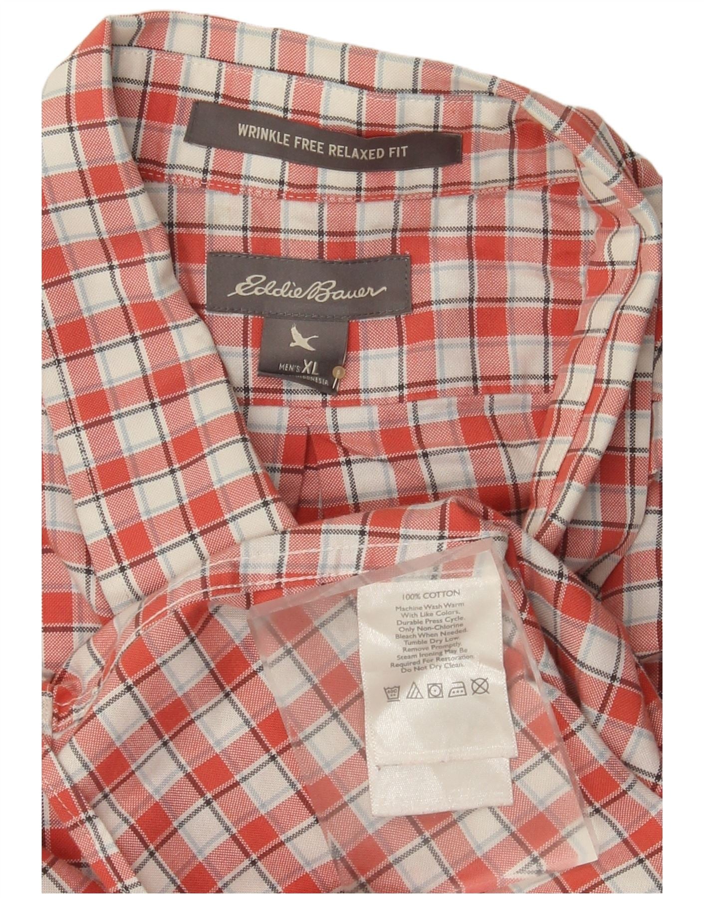 Camicia da uomo dalla vestibilità rilassata Eddie Bauer XL in cotone a quadri rossi