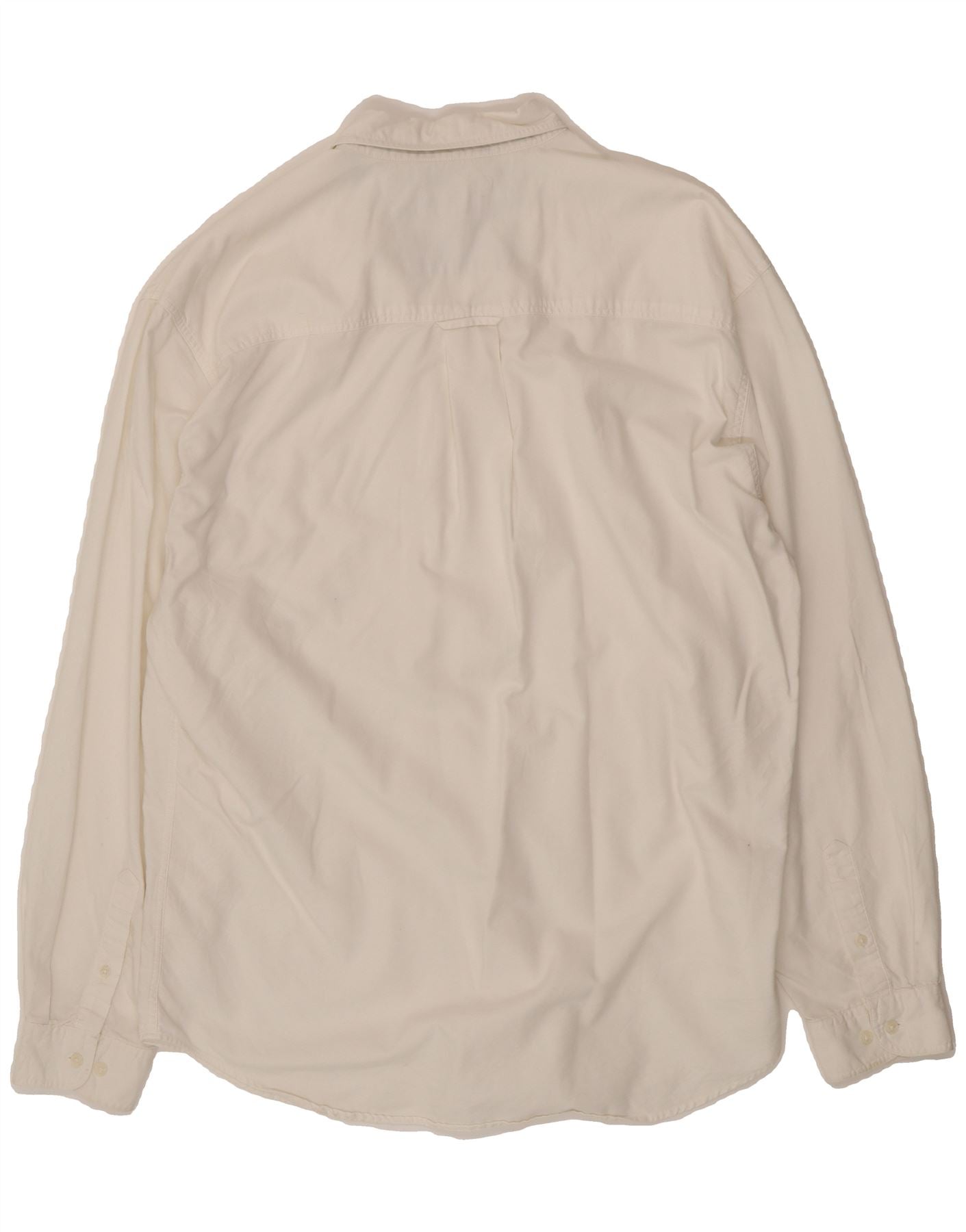 - AI Description: This pre-owned Eddie Bauer shirt is a classic addition to any gentleman's wardrobe. Crafted from a woven fabric, this long-sleeved, collared shirt features a regular fit and button closure. The shirt is white and includes practical pockets. In good condition, it does have minor stains on the front. Size XLT.