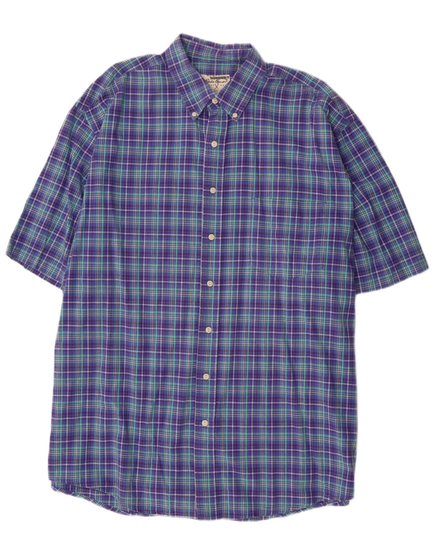 EDDIE BAUER Camicia a maniche corte da uomo XL Viola a quadri in cotone