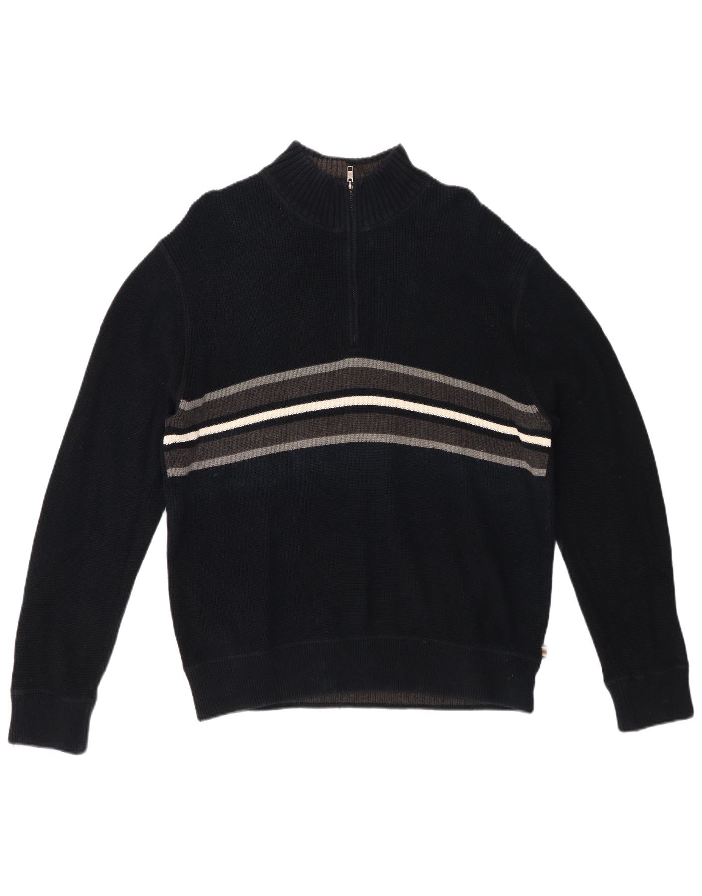 EDDIE BAUER Maglione da uomo con zip e collo grande in cotone a righe blu navy