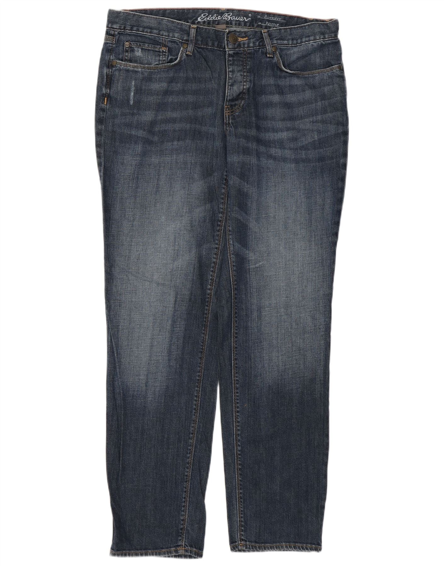 Eddie Bauer Jeans Boyfriend affusolati da donna US 12 Large W34 L30 Cotone blu