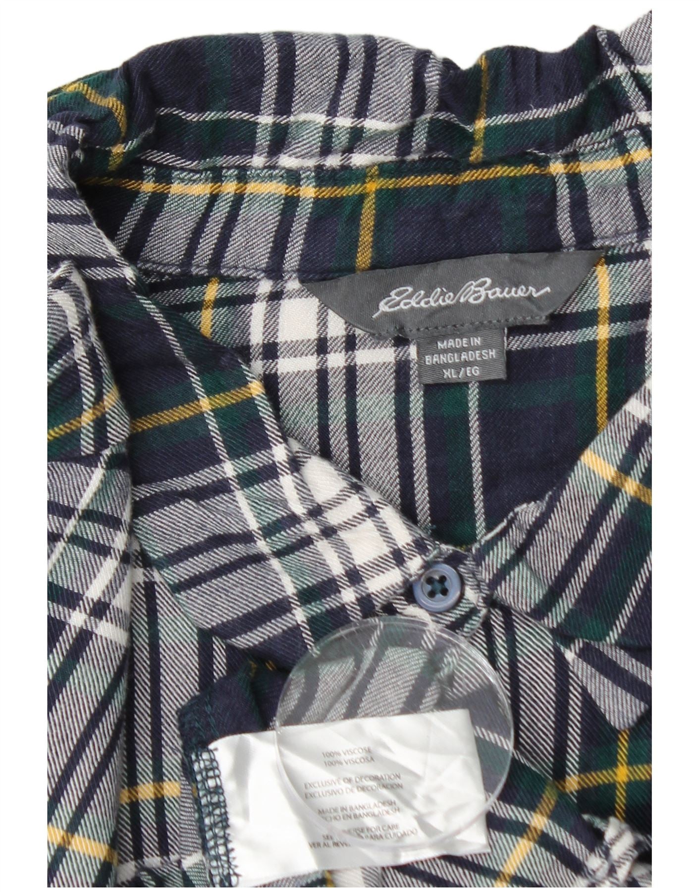 Camicia in flanella da donna EDDIE BAUER UK 18 XL viscosa a quadri blu navy