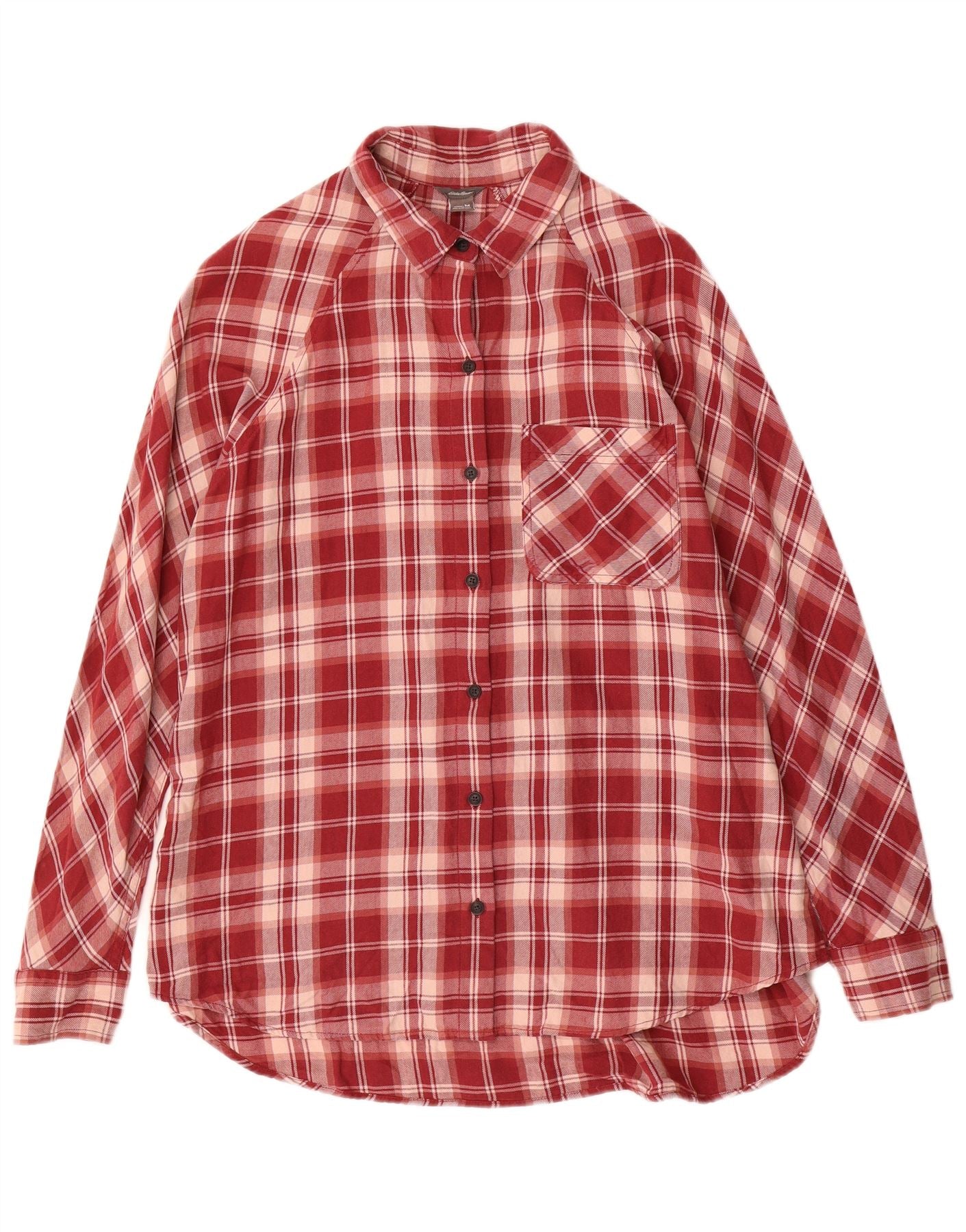 EDDIE BAUER Camicia da donna in flanella a taglio lungo, vestibilità ampia, UK 14, quadri rossi medi