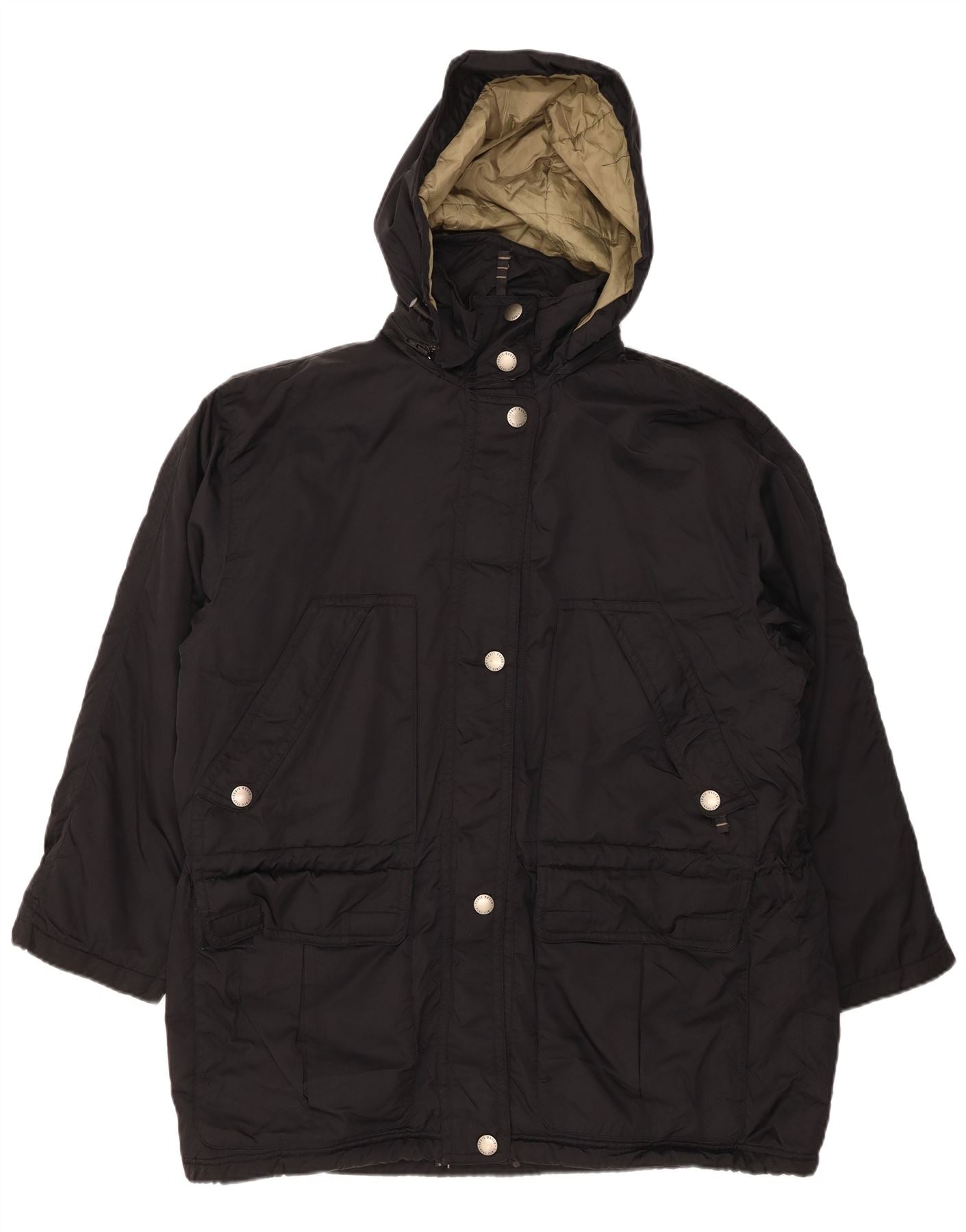 EDDIE BAUER Giacca a vento oversize con cappuccio da donna UK 16 Large Nero