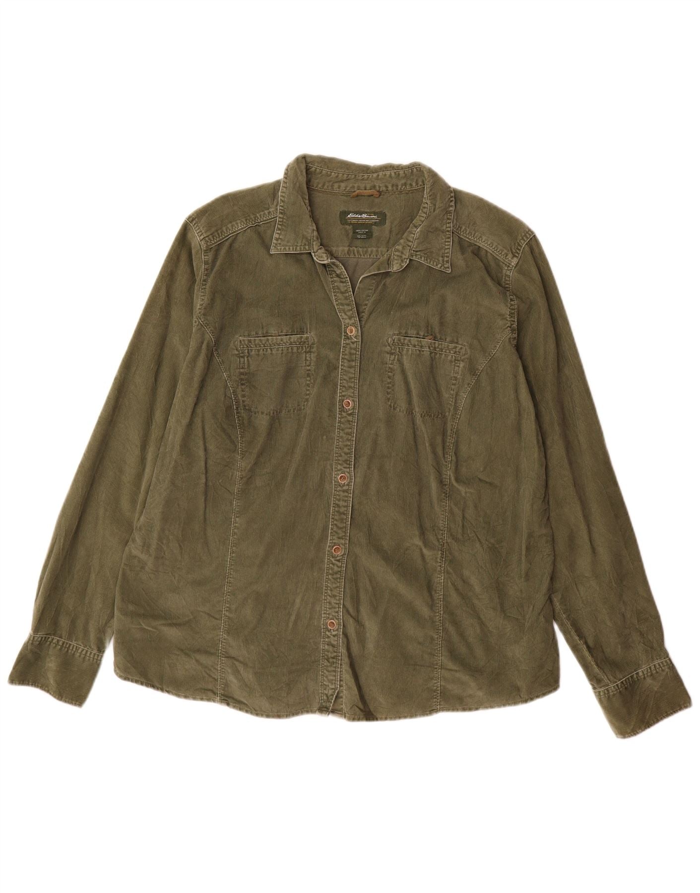 EDDIE BAUER Camicia alta da donna in velluto a coste UK 18 XL Cotone verde