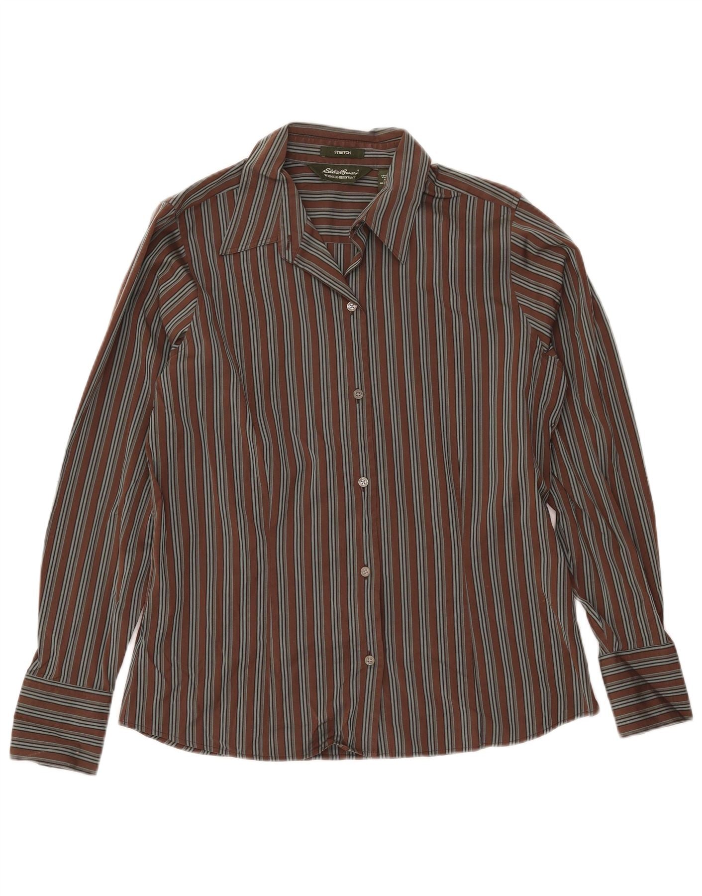 Camicia alta da donna Eddie Bauer UK 16 grande cotone a righe marroni
