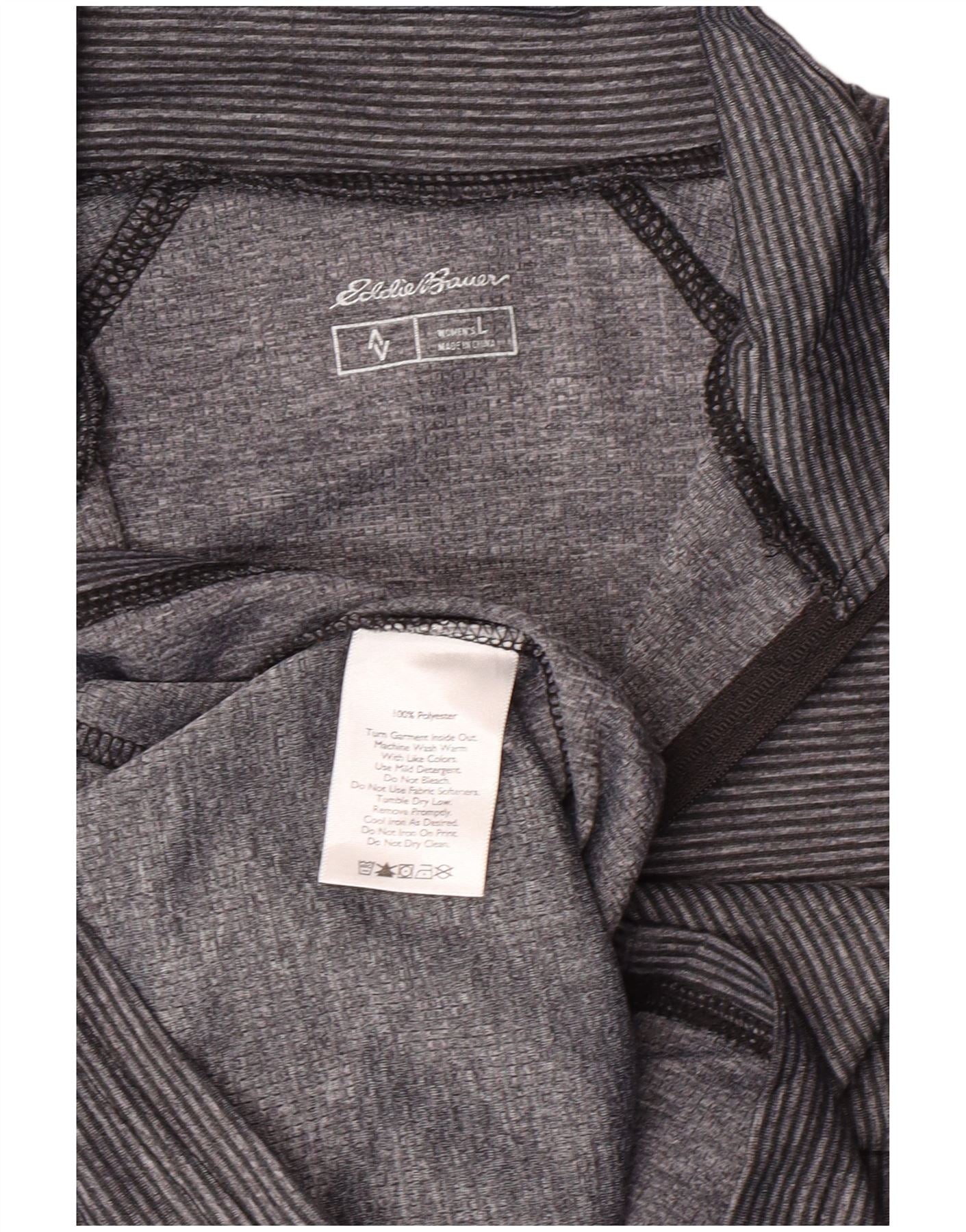 Eddie Bauer Top da Donna con Zip e Collo a Maniche Lunghe UK 14 Grandi Sport a Righe Grigie