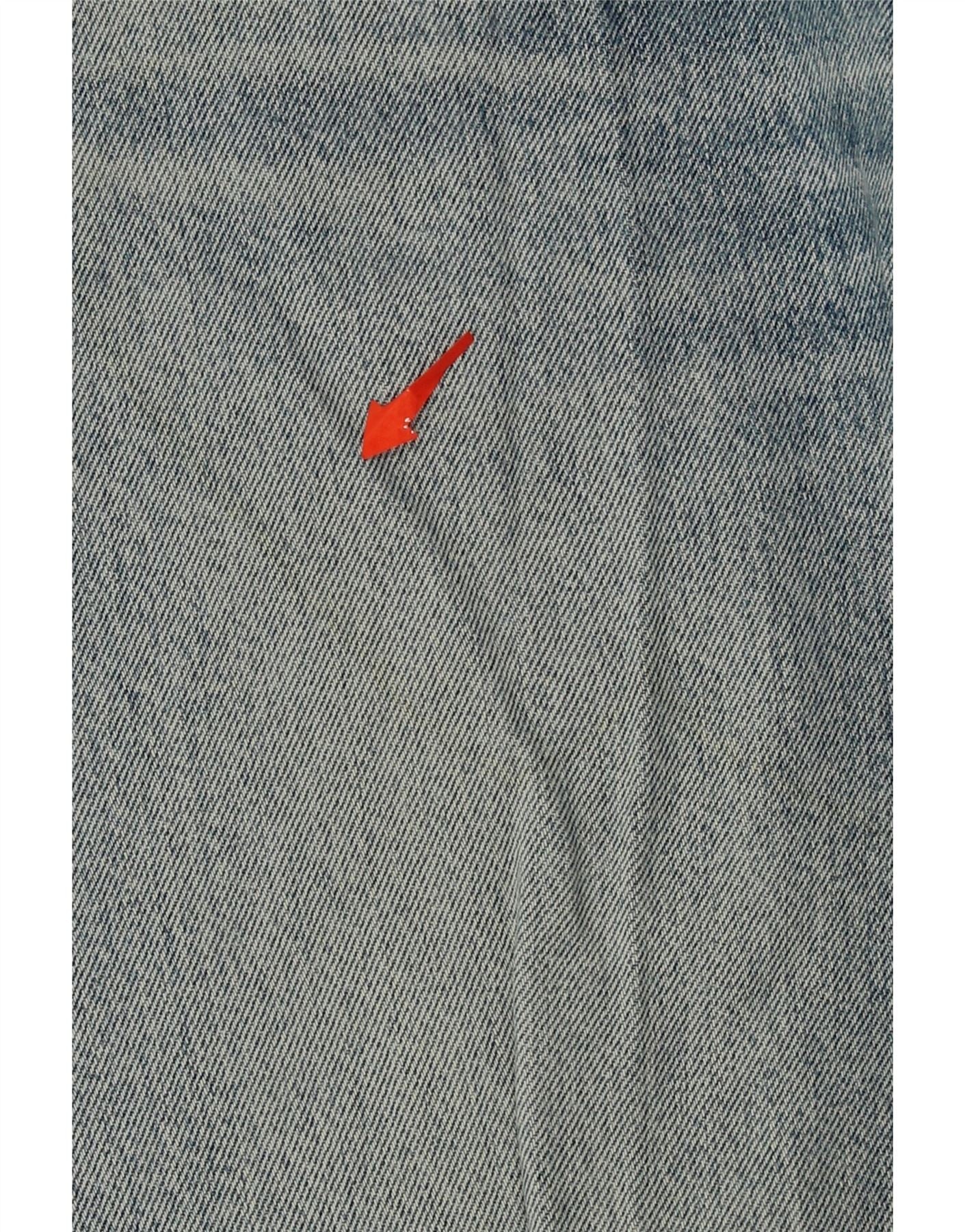 - AI Description: Crafted by Edwin, these classic men's straight jeans offer a regular fit in durable blue denim. Featuring a button closure and practical pockets, these jeans exude timeless style. Note visible wear and moderate discoloration throughout, with minor stains on the leg. These pre-owned jeans, labelled size W-33 L-32, were made in Japan. The design is accented with a button.