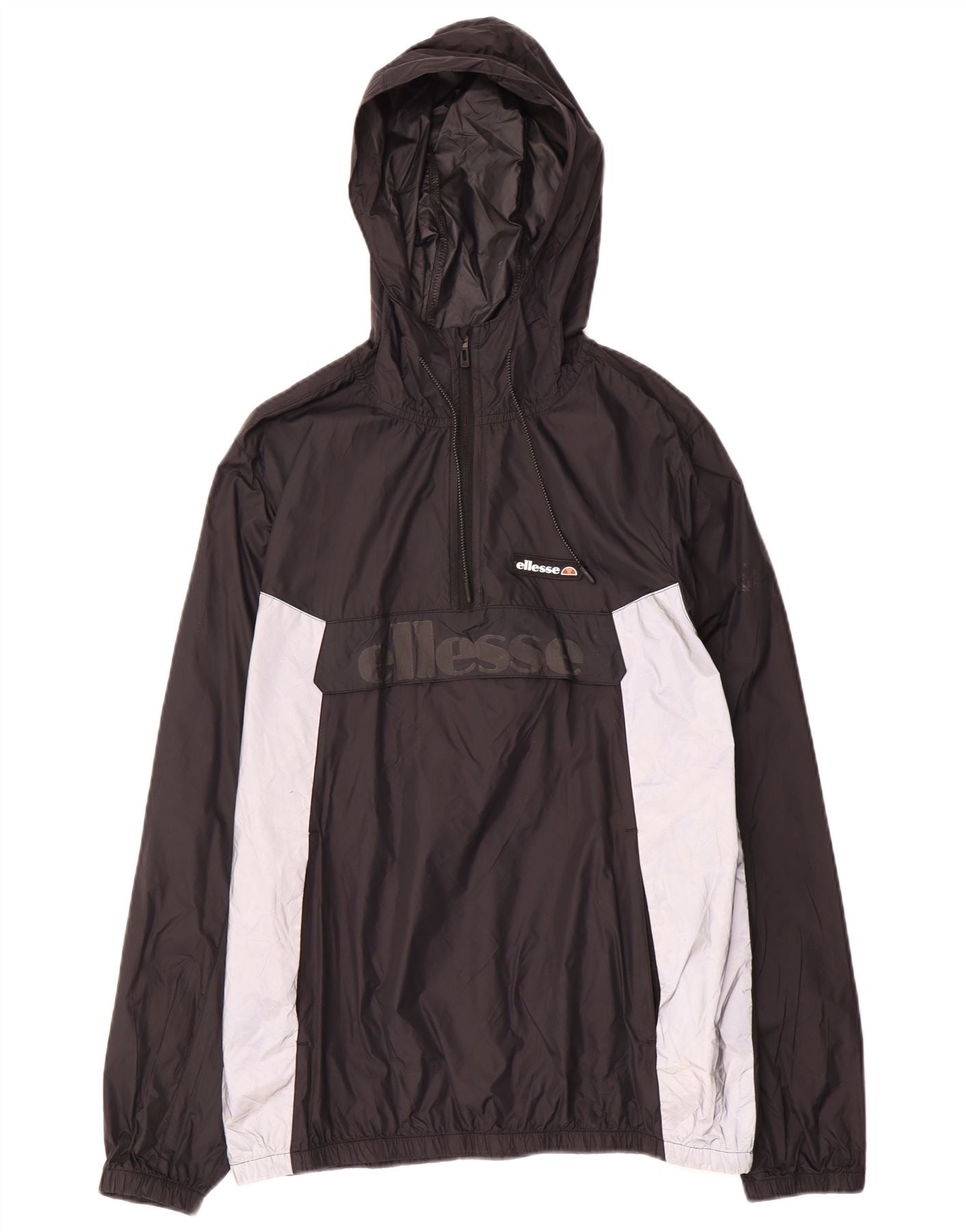 ELLESSE Giacca anorak da uomo con cappuccio grafico UK 40 Large Black Colourblock