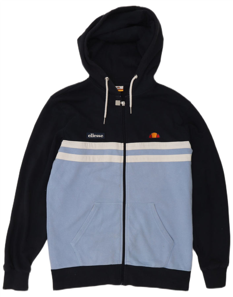ELLESSE Maglione con cappuccio e zip da uomo in cotone color block medio blu navy