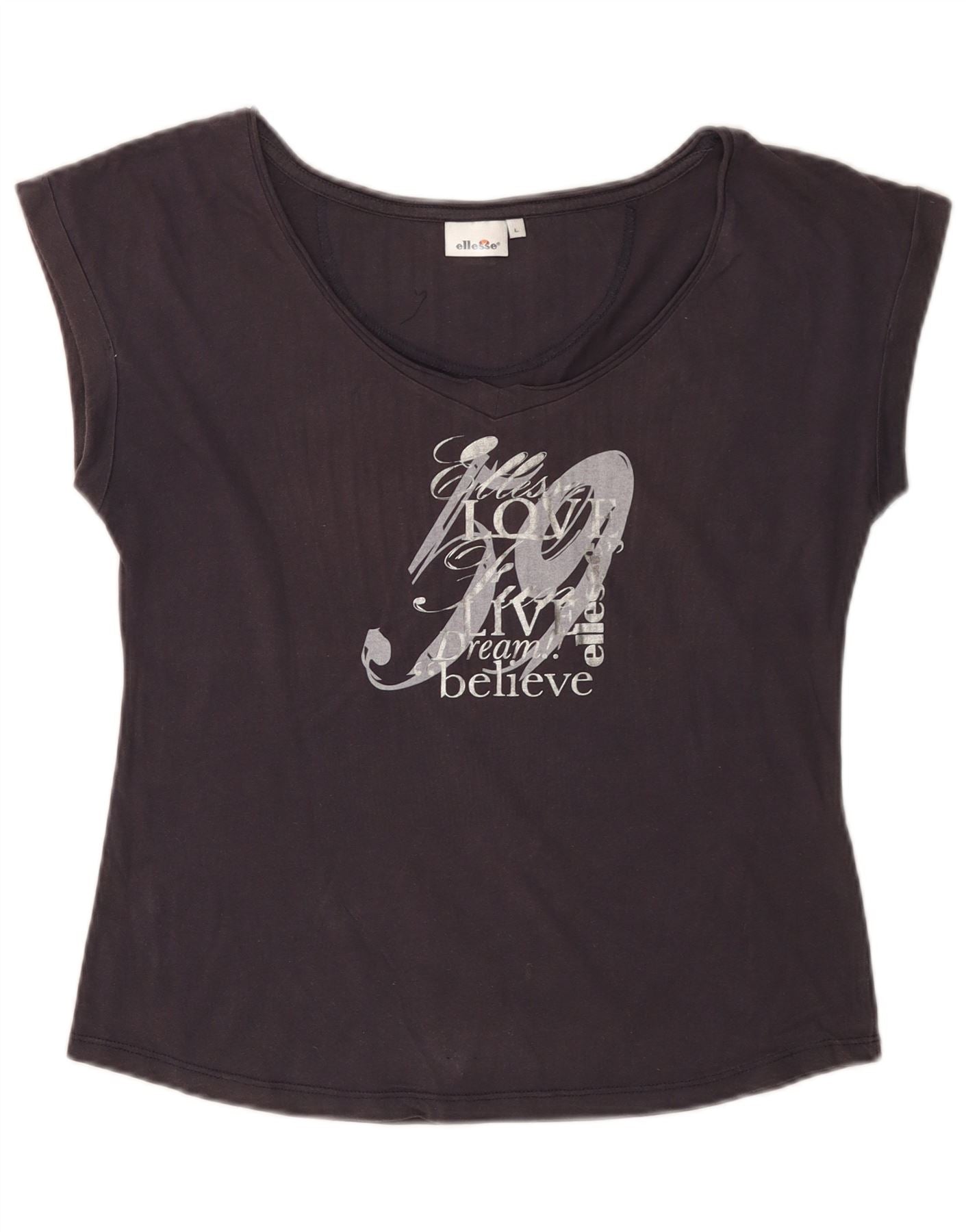 ELLESSE T-shirt grafica da donna Top UK 14 Large Blu Navy in cotone
