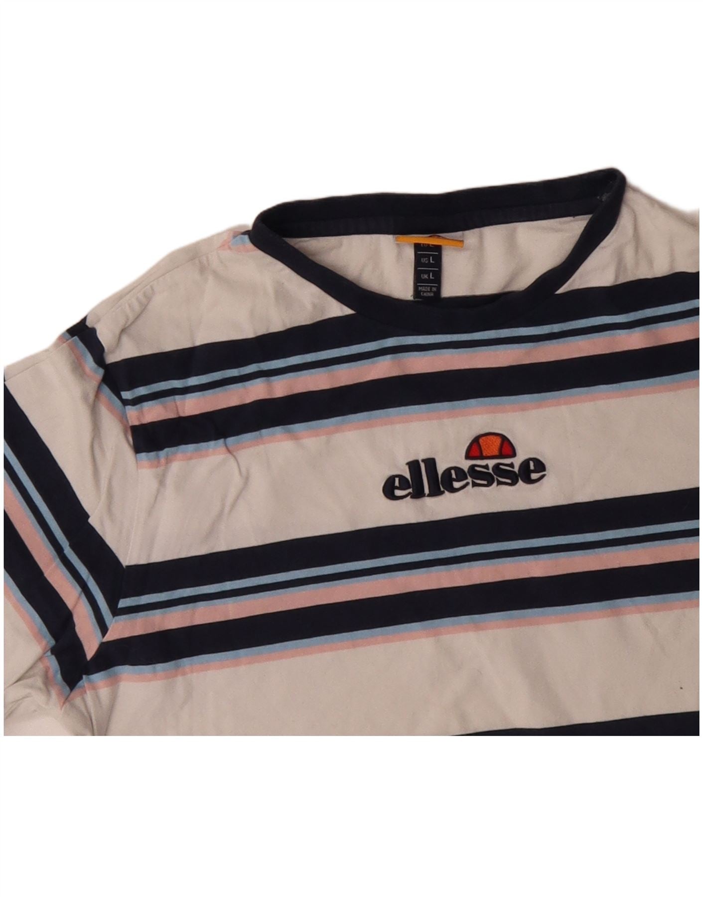ELLESSE T-shirt grafica da donna Top UK 16 Cotone a righe grandi bianche