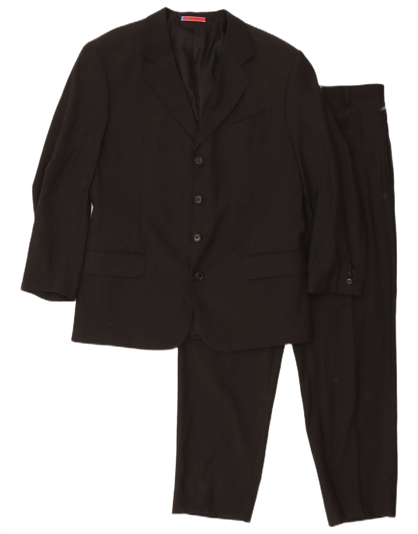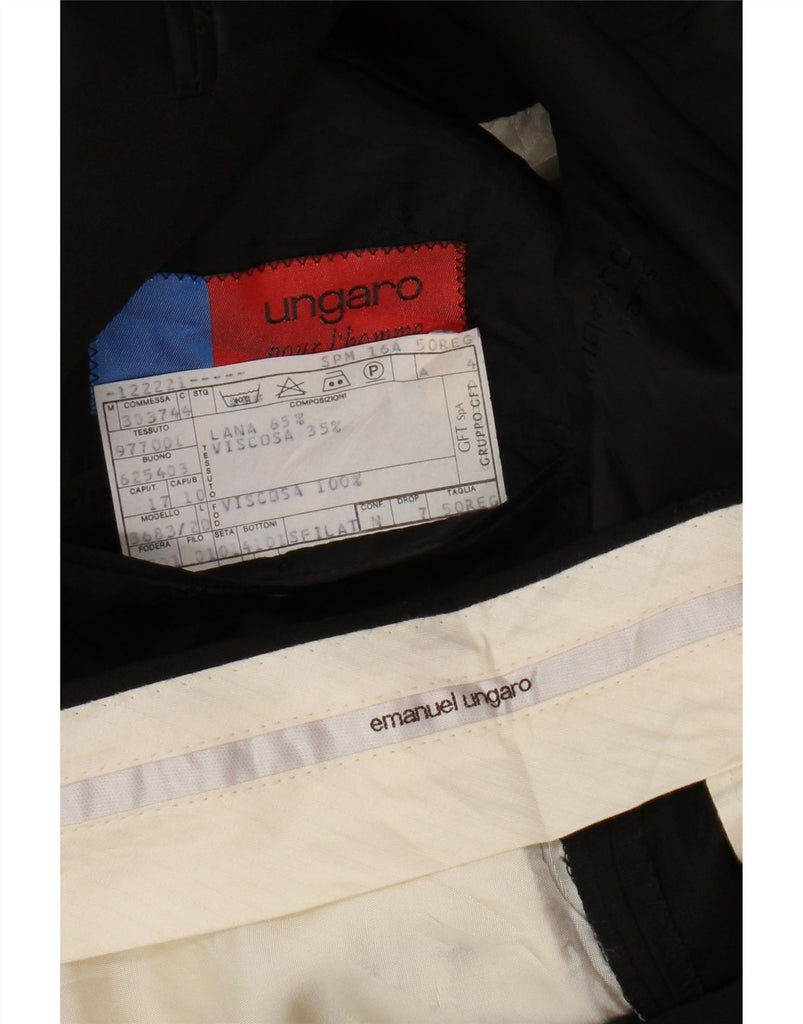 EMANUEL UNGARO Mens 4 Button 2 Piece Suit IT 50 Large W32 L29 Black Wool