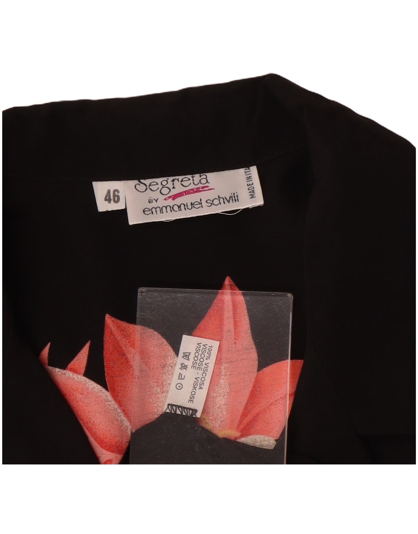 EMMANUEL SCHVILI Womens Graphic Shirt Dress IT 46 Large Black Floral